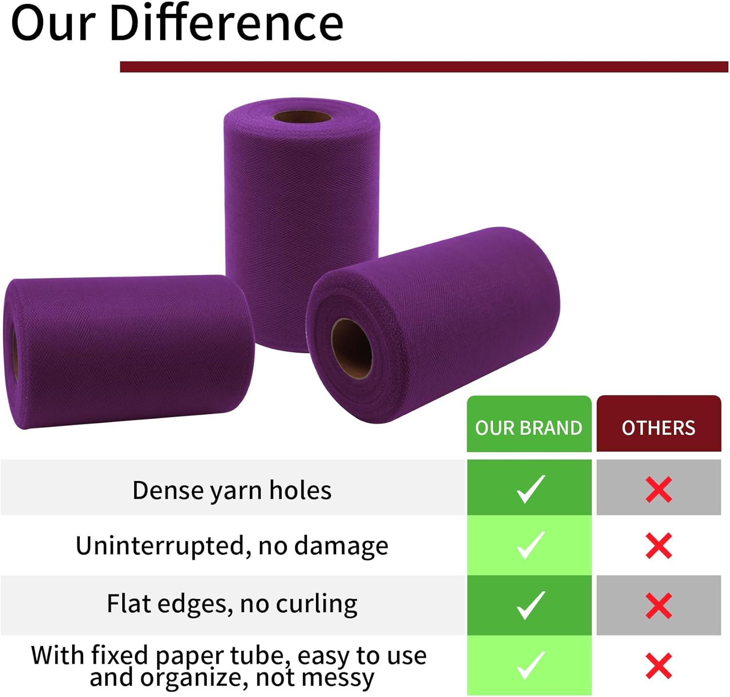 - Each tulle fabric spool measures 6 inch x 100 yards (300 feet), sufficient length, continuous and uninterrupted.