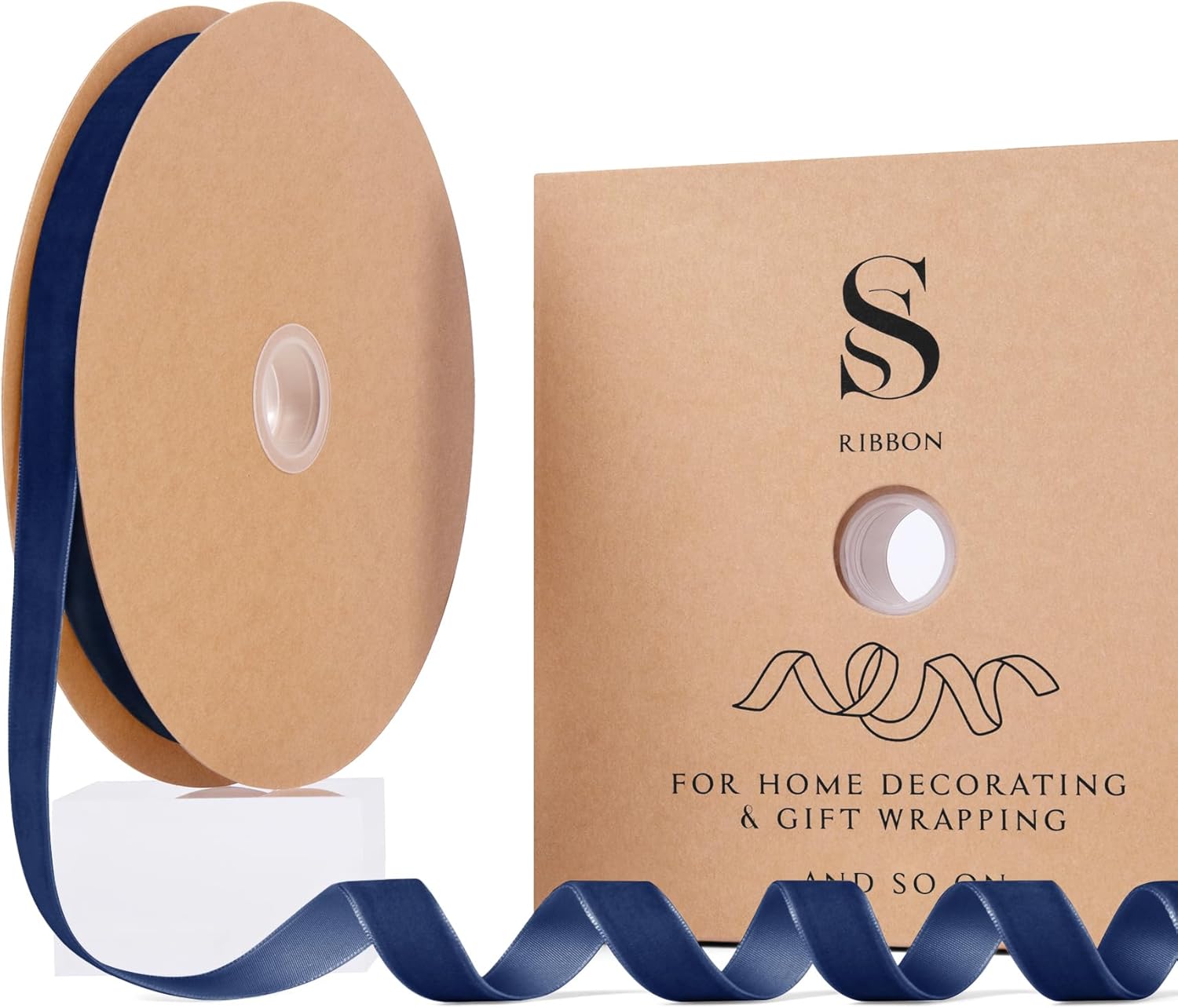Navy Blue Christmas Velvet Ribbon for Tree, Gift Wrapping, Flower Bouquet, Wreath Decorations, Bow Making 5/8'', 25 Yards