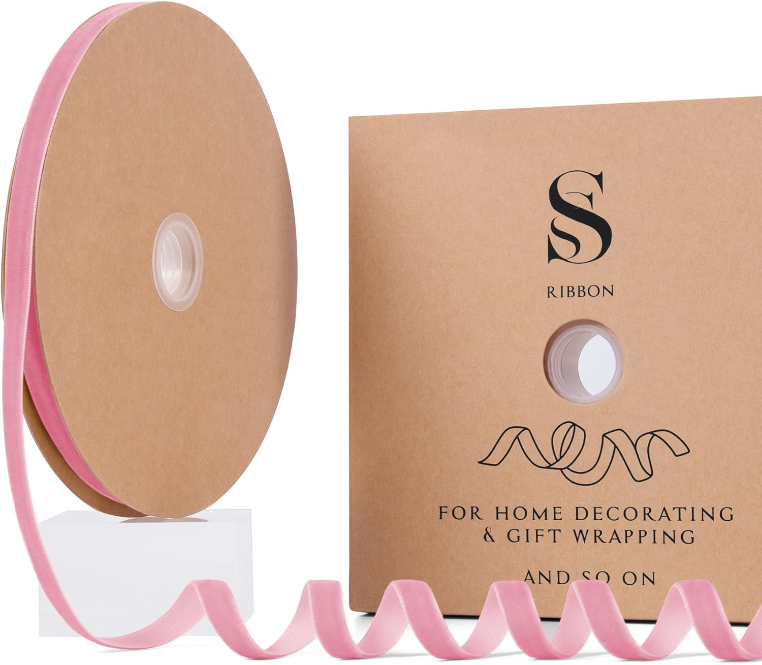 Pink Christmas Velvet Ribbon for Tree, Gift Wrapping, Flower Bouquet, Wreath Decorations, Bow Making 3/8'', 25 Yards