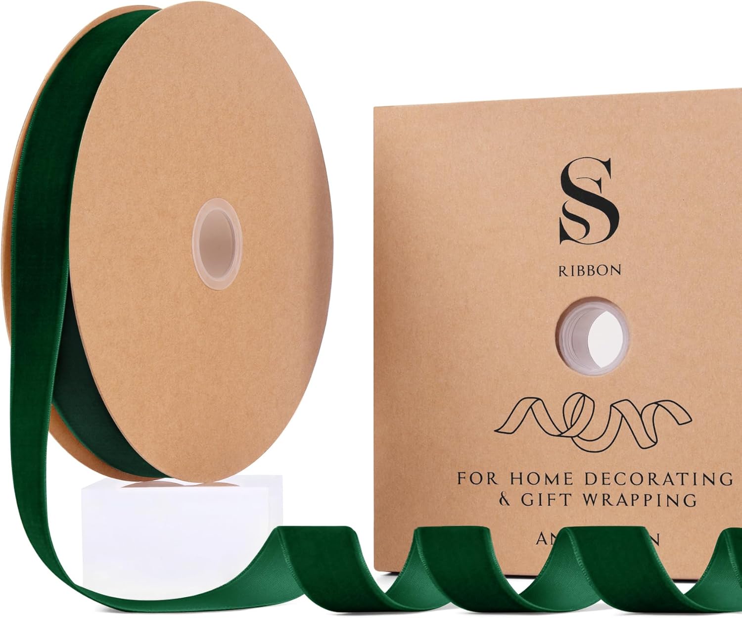 Dark Green Christmas Velvet Ribbon for Tree, Gift Wrapping, Flower Bouquet, Wreath Decorations, Bow Making 1'', 25 Yards