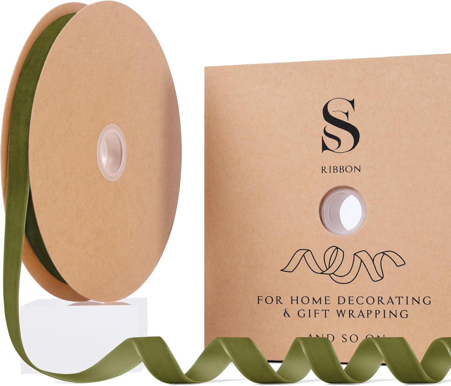 Olive Green Christmas Velvet Ribbon for Tree, Gift Wrapping, Flower Bouquet, Wreath Decorations, Bow Making 5/8'', 25 Yards