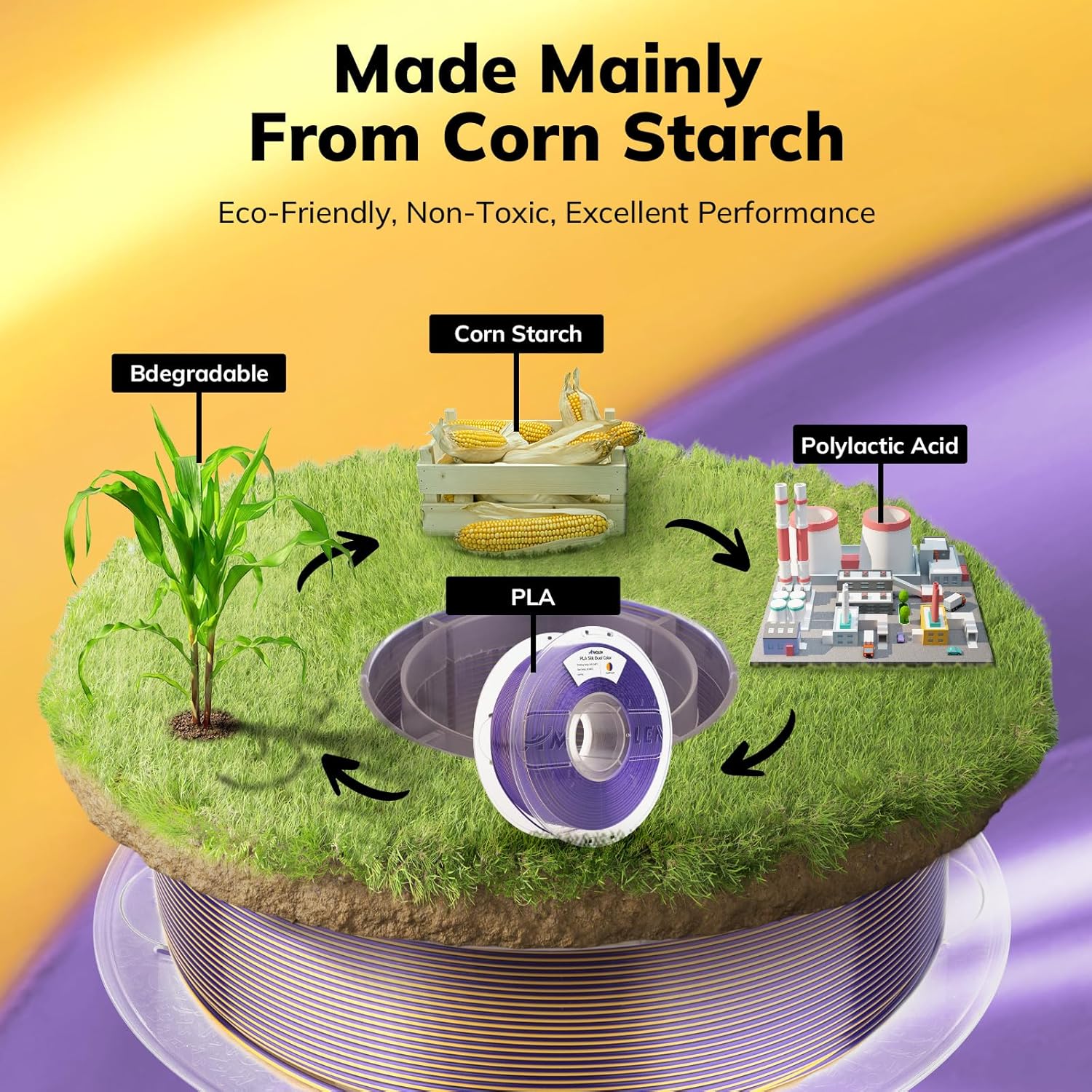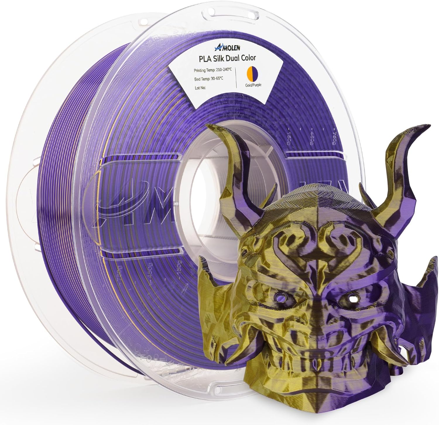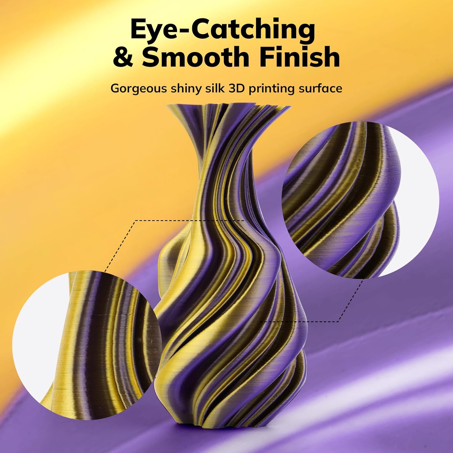 - Eye-catching Silk PLA: Shiny purple and gold combination of magic 1.75mm PLA filament, make the two sides of your print appear in different colors. Without polishing, you can get a silk glossy and smooth 3d prints. Beginner & expert friendly, it’s your go-to for eye-catching designs all year round