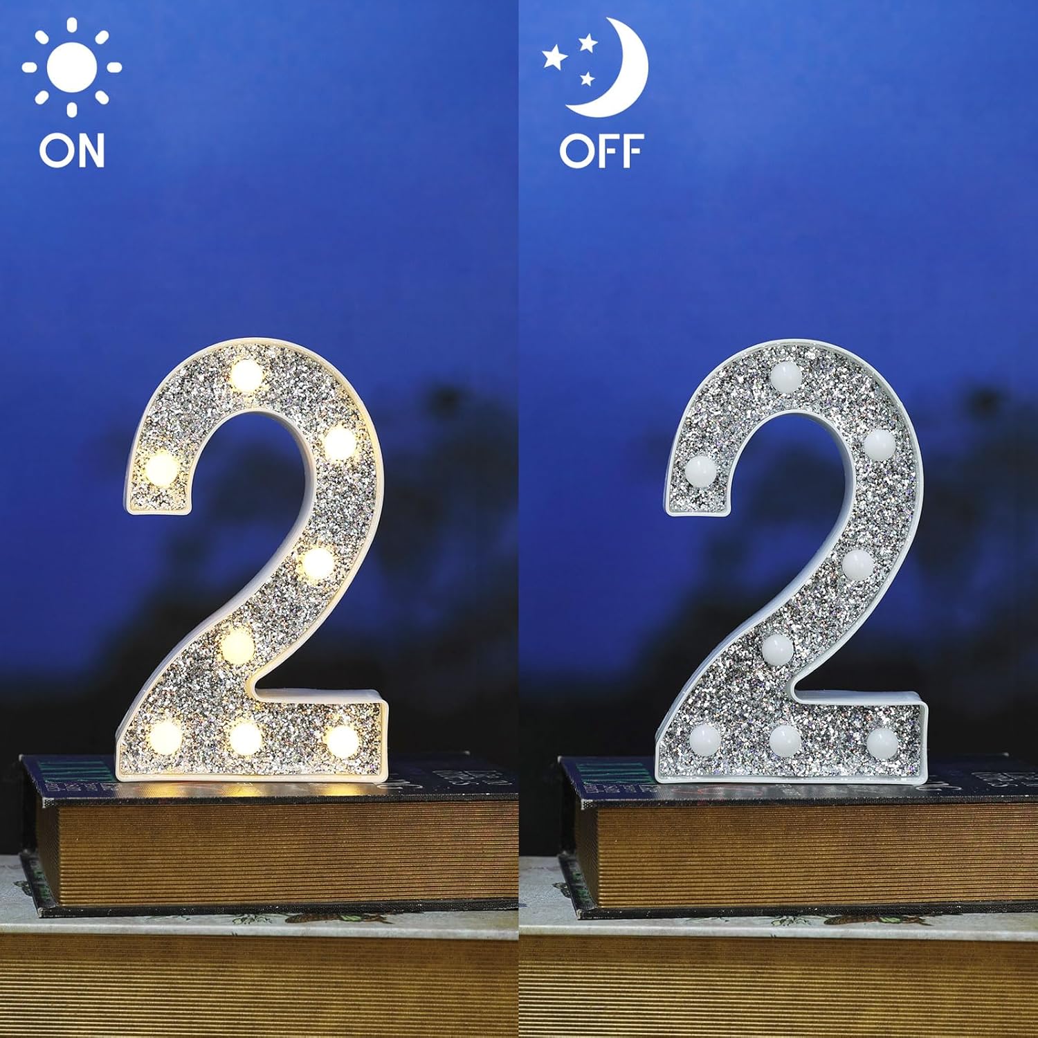 Marquee Light Letters for Table Decorations, Glitter Light Up Signs for Prom, Events, or Engagement Party Decor, Featuring Alphabet & Number Lighted Letters, Number 2