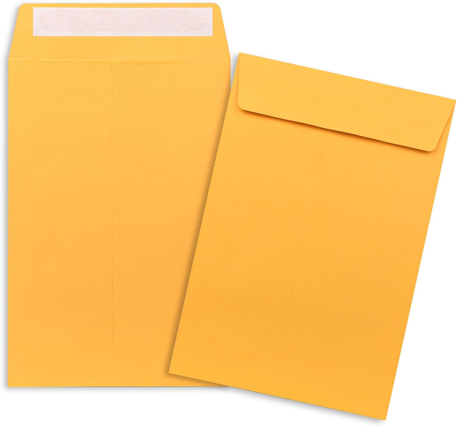 6x9 Self-Seal Envelopes 50 Pack - Manilla Catalog Mailing Envelopes for Photos, Cards, Documents