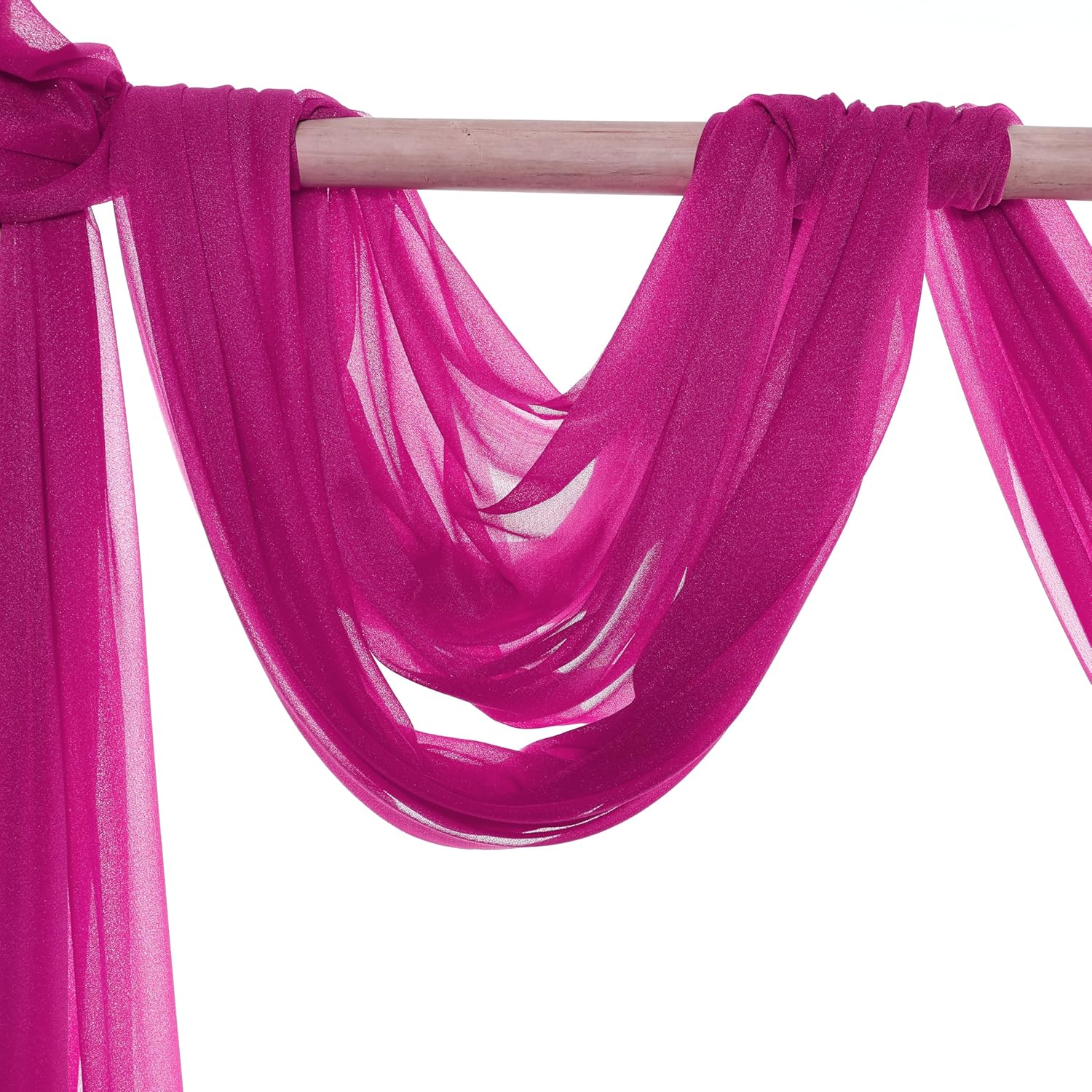 VDS Pack of 2 Panel (30 Inch X 100 Feet) Wedding Arch Draping Fabric Sheer Chiffon Fabric Drapery for Wedding Ceremony Reception Swag Backdrop Canopy Chuppah ARBO Altars Decoration (Magenta)