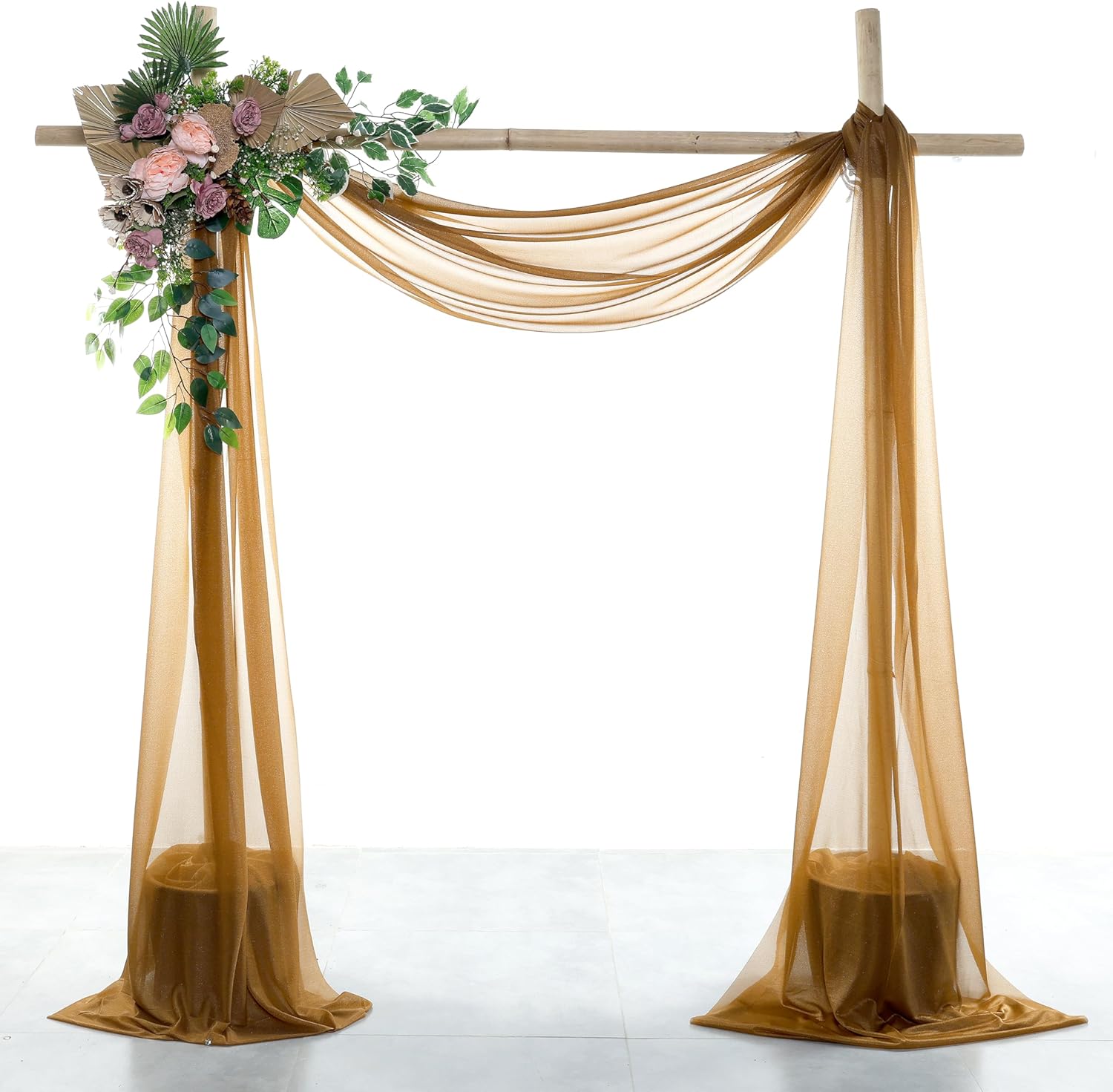 VDS Pack of 2 Panel (30 Inch X 40 Feet) Wedding Arch Draping Fabric Sheer Chiffon Fabric Drapery for Wedding Ceremony Reception Swag Backdrop Canopy Chuppah ARBO Altars Decoration (Mocha)
