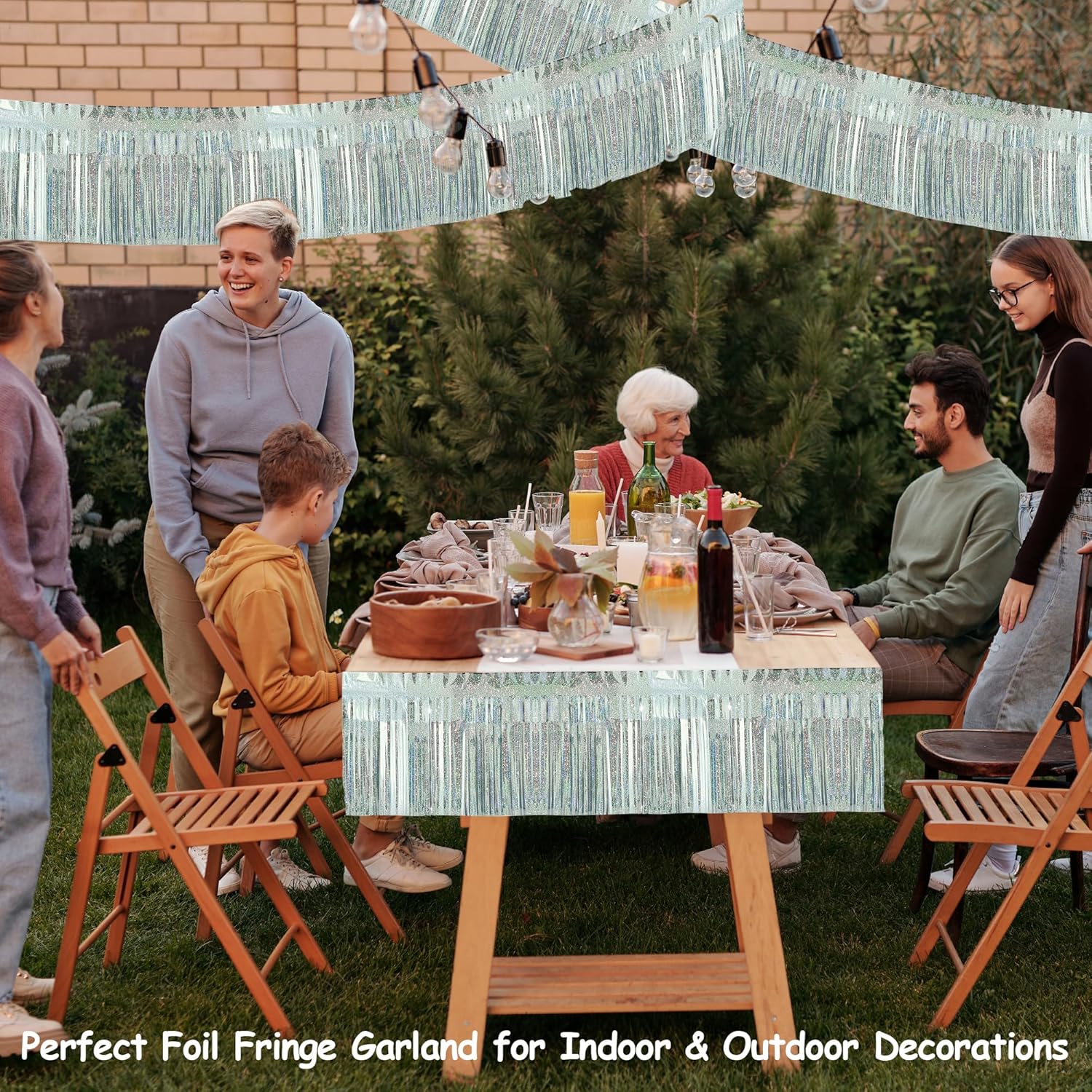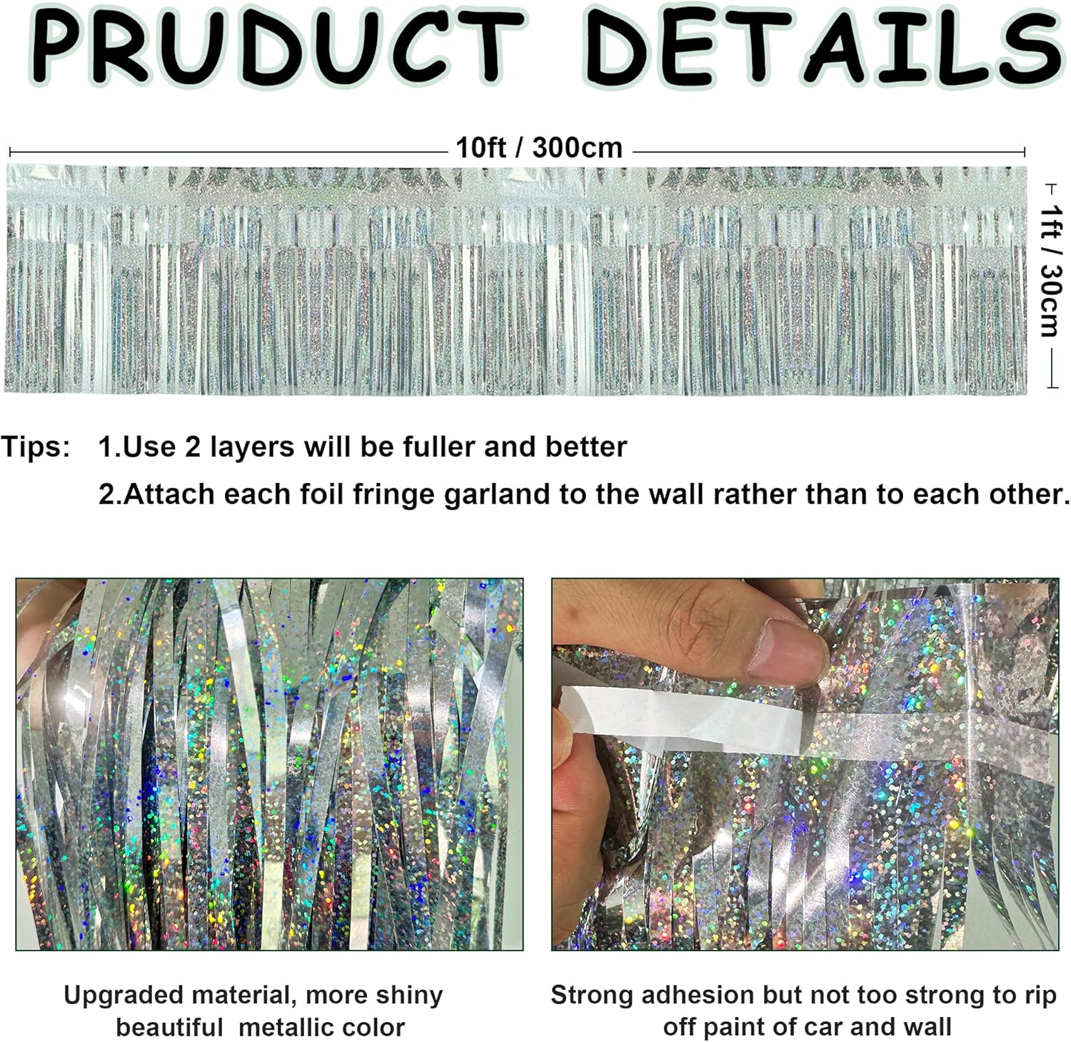 - PARTY SUPPLIES: The glitter foil tassel garland serves as an awesome party decoration trim, fancy up a party. Hang it on the wall as an iridescent shiny backdrop for photos, attach it to the ceiling, decorate the dessert table as a table skirt, make an elegant entrance curtain for your guests or install it anywhere you want to decorate. Your guests will be impressed with your creative party