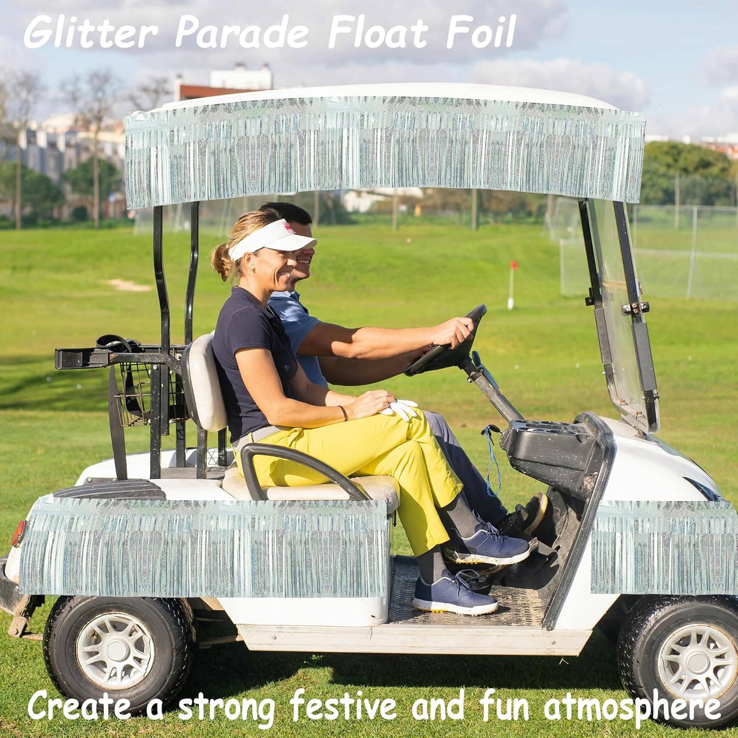 - WIDE DECORATION: These glitter silver fringe foils are perfect for parade floats, decorative metal trailers, graduation parades, wedding car decorations, homecoming, classroom decorations, stage skirting, wedding, birthday party, bachelorette party, 4th of July, Christmas parades and more. The glitter foil fringe garland is perfect for indoor & outdoor decorations and themed parties
