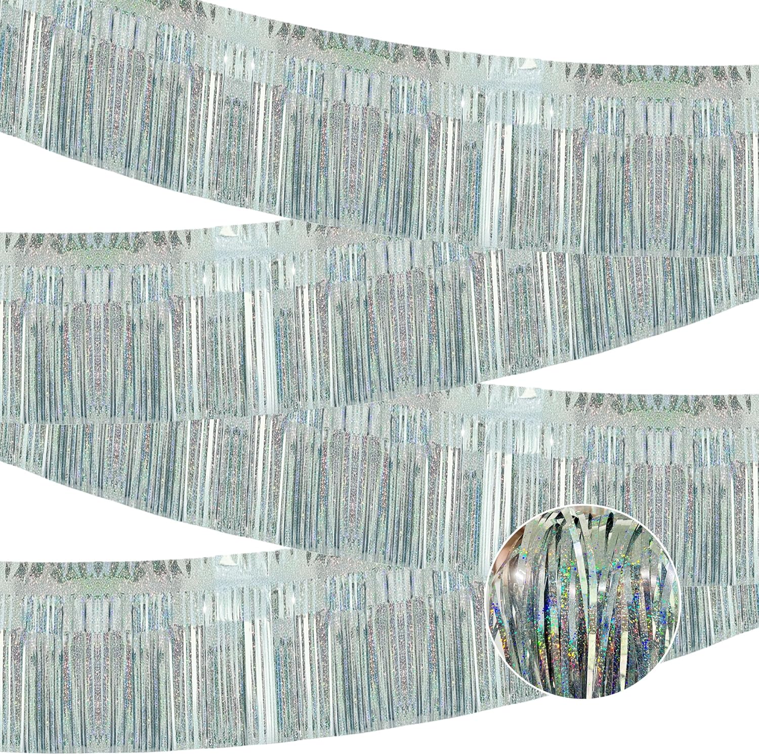 - PACKAGE INCLUDES: Comes with 4 packs of glitter silver fringe, Each garland is 10*1 ft/3*0.3m (L*W ), Enough quantity and more shiny, you can cut it into any size to meet your decoration needs. With these festive tassel streamers, you can take your parade float decorations and party to the next level