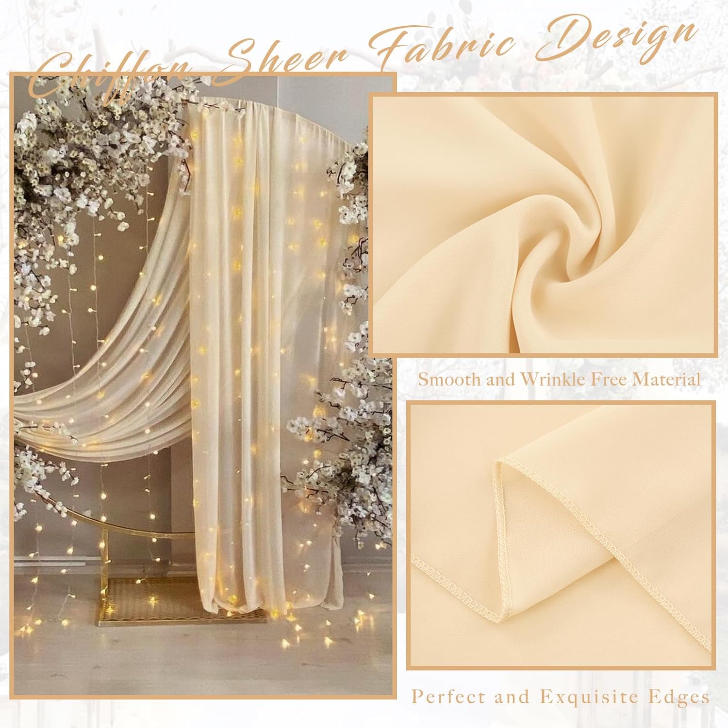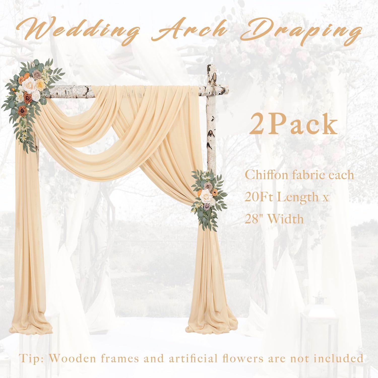 2 Panels Wedding Arch Draping Fabric 20Ft Length x 28" Width Champagne Arch Drapes Chiffon Fabric Sheer Curtains Backdrop for Party Bridal Decorations Wedding Ceremony Ceiling Stage Reception Decor