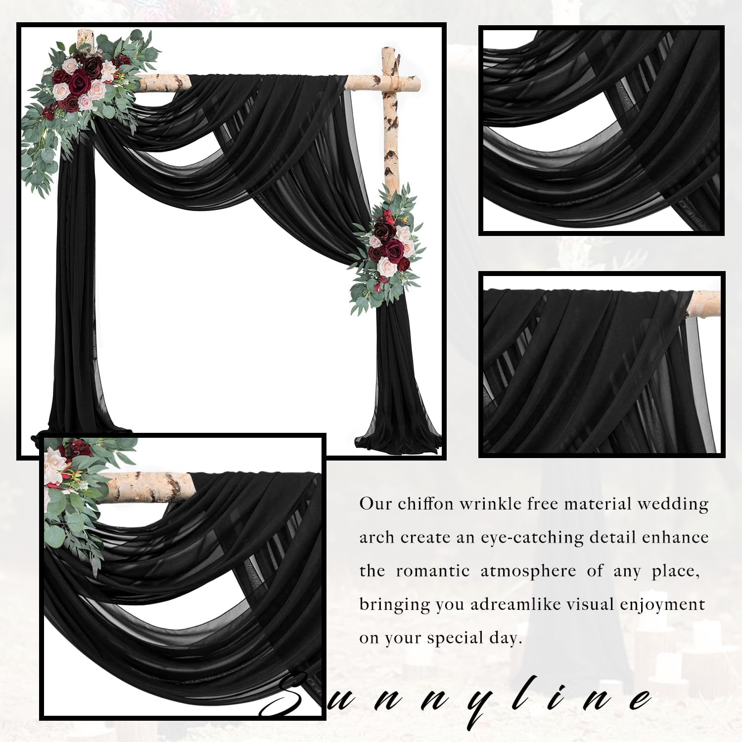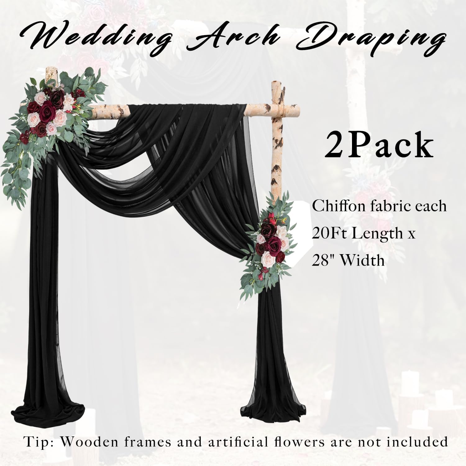 20Ft Length x 28" Width 2 Panels Wedding Arch Draping Fabric Black Arch Drapes Chiffon Fabric Sheer Curtains Backdrop for Party Decor Wedding Bridal Ceremony Ceiling Stage Reception Decorations