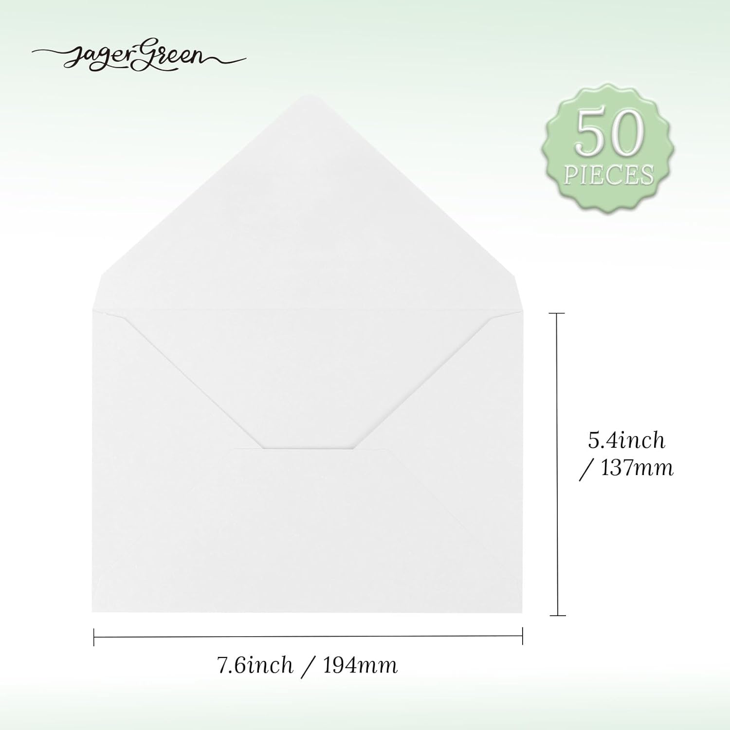 50 Pack 5x7 Envelopes Letter Size, White A7 Envelopes Self Seal for Wedding Invitation, Envelope 5.4x7.6 for Greeting Cards, Photos, Baby Shower, Graduation, Thank You Cards, Announcements