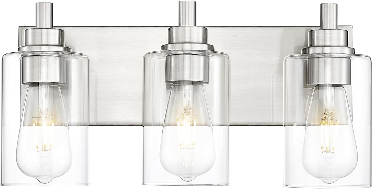 - Inspired Design: This 3-light bathroom light fixtures over mirror features a brushed nickel metal frame and elegant cylinder clear glass shades, seamlessly fitting modern minimalist decor. You can install it upwards or downwards for versatile style
