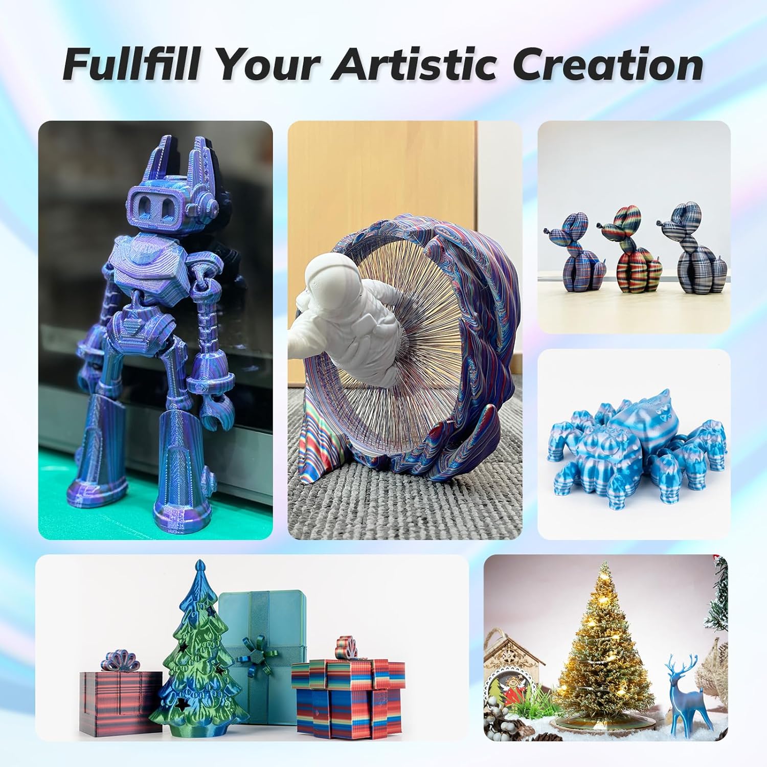 - Vibrant Colors and Multiple Choices: Amolen 3D printer filament offers a rich selection of colors, meeting all your creative needs. You can get amazing color transition while saving time and cost compared to traditional single-color filaments