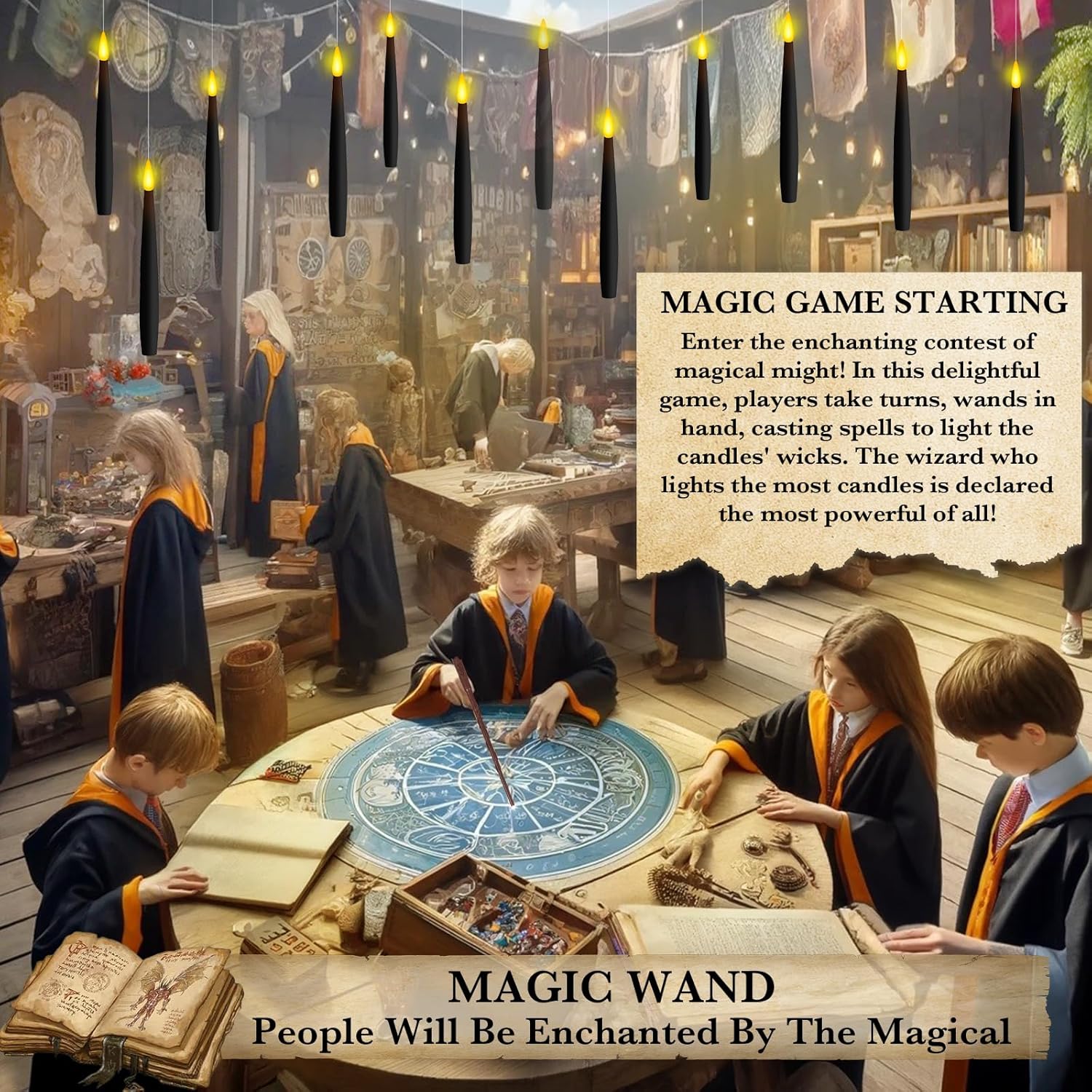 - START YOUR WAND SKILL CAMP: Our creative wands offer a unique way to practice magical abilities with floating candles. By keeping practice your wand skills, you can light up additional candles. Decorated in your movie classroom,this provides a enchanting space for children to stimulate imagination and compete who to become the most powerful wizard. Tips, holding down the wand button lets you slow down spell for better illuminating more candles.Celebrating your graduation from magic school