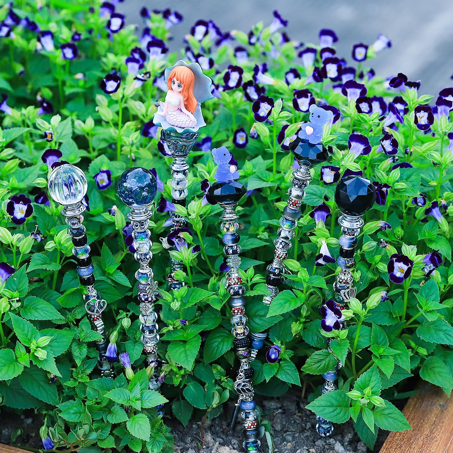 158 Pcs DIY Fairy Wand Garden Stakes Kit,Multiple Color Scheme European Beads Crystal Diamond Tops and 12 or 10 Inch Threaded Rods,Stainless Steel Stakes with Diamond Toppe (Black)
