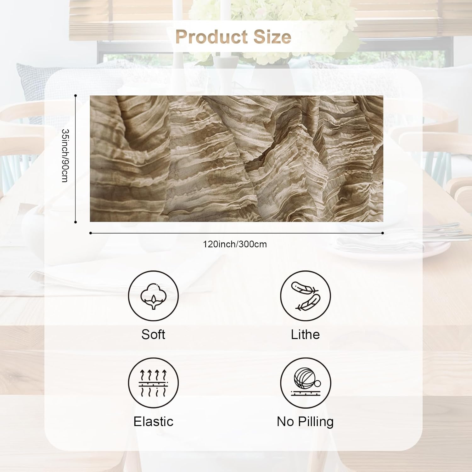 - User-Friendly: We understand the importance of convenience for our customers. Our khaki rustic sheer table runner is easy to clean and maintain. They can be machine washed or hand washed without losing their shape or color. The lightweight and flexible nature of the cheesecloth and gauze make them easy to handle and store, saving you space and effort.