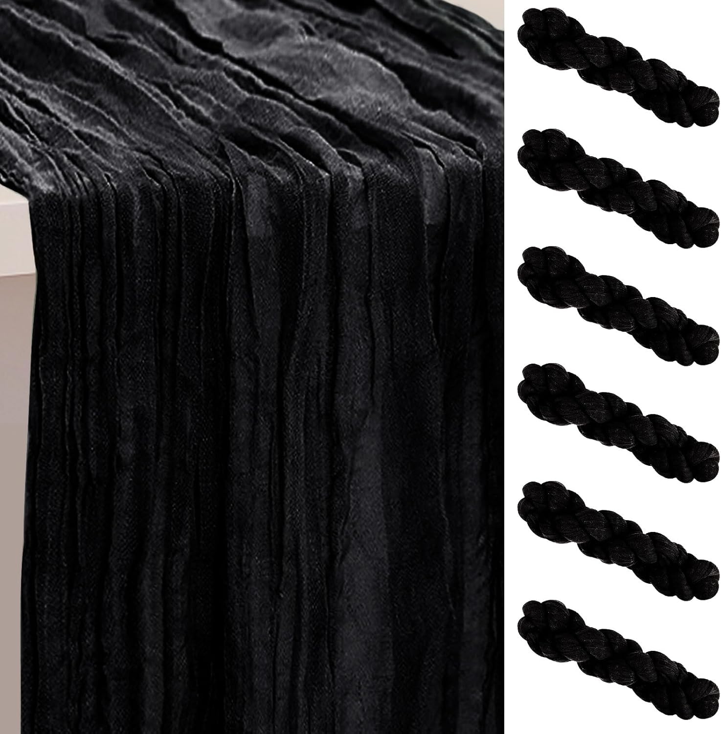 6 Pack Black Cheesecloth Table Runner 35x120 Inch 10Ft Rustic Gauze Cheese Cloth Thanksgiving Table Runner Sheer Cheesecloth Table Runners for Wedding Party Bridal Shower Decoration