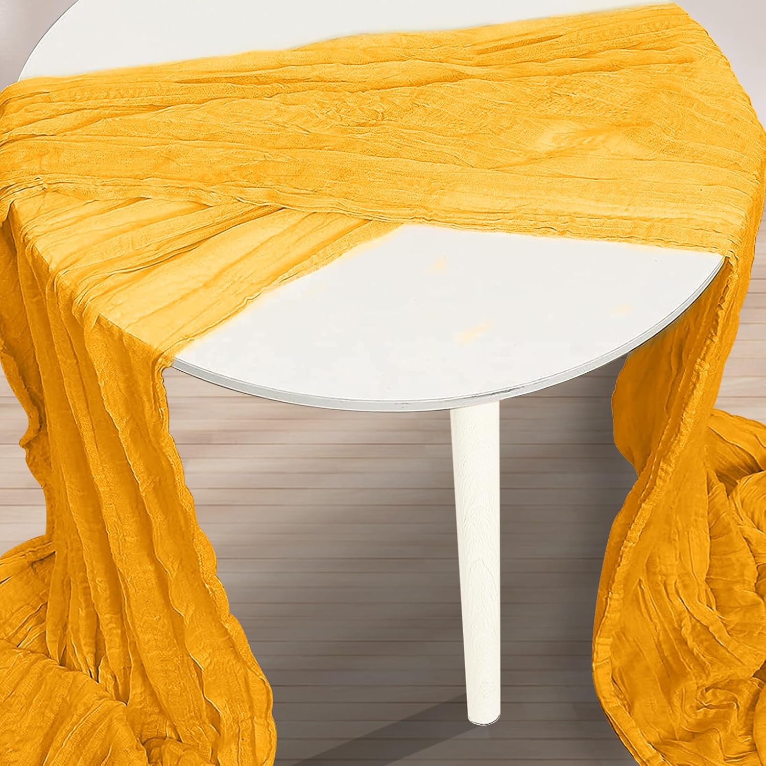 - User-Friendly: We understand the importance of convenience for our customers. Our gold rustic sheer table runner is easy to clean and maintain. They can be machine washed or hand washed without losing their shape or color. The lightweight and flexible nature of the cheesecloth and gauze make them easy to handle and store, saving you space and effort.