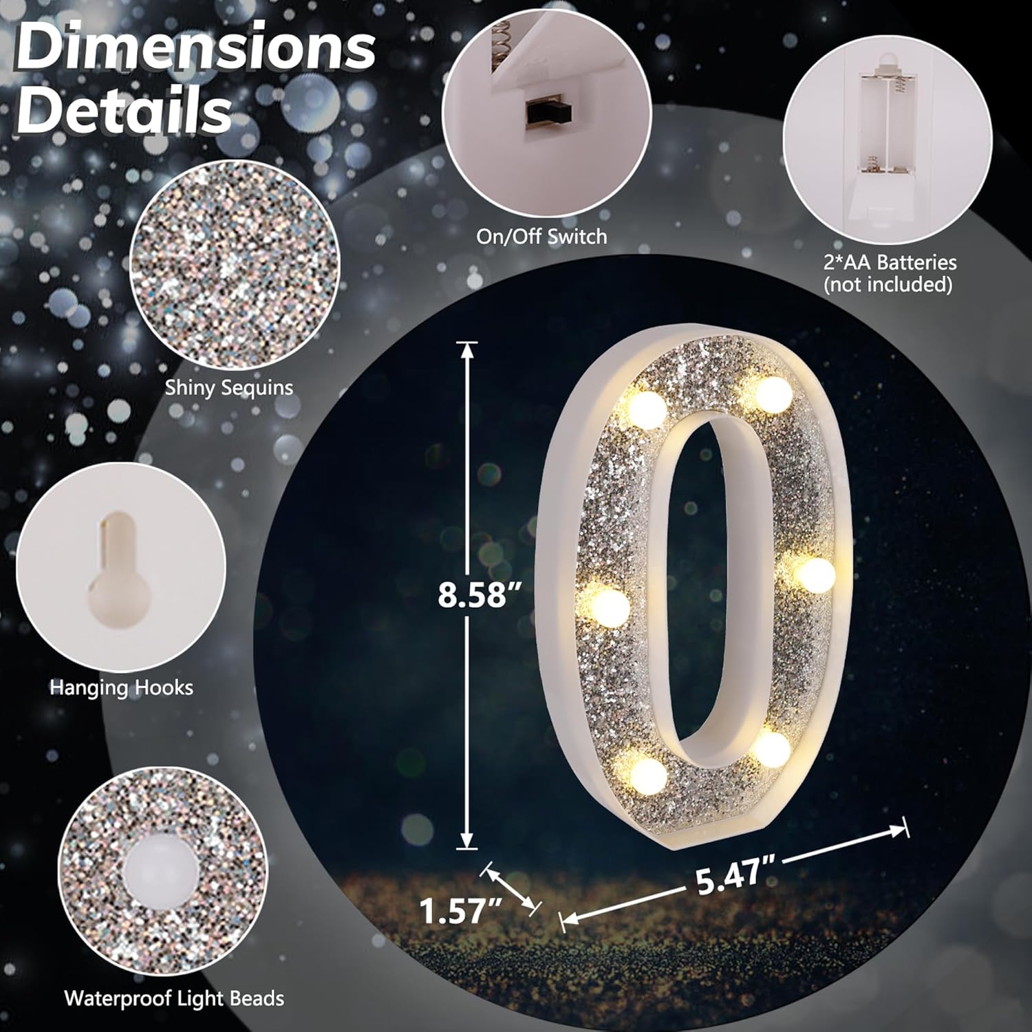- 【Glitter Silver Marquee LED Letters】Unlike normal white lighted letters, these LED letter lights are covered with shiny silver glittering sequins. Whether it is turned on or off, these glitter marquee lights give a bright eye-catching glow. You can use it to beautify your dining table and light up your party. Create a dreamlike and romantic atmosphere.