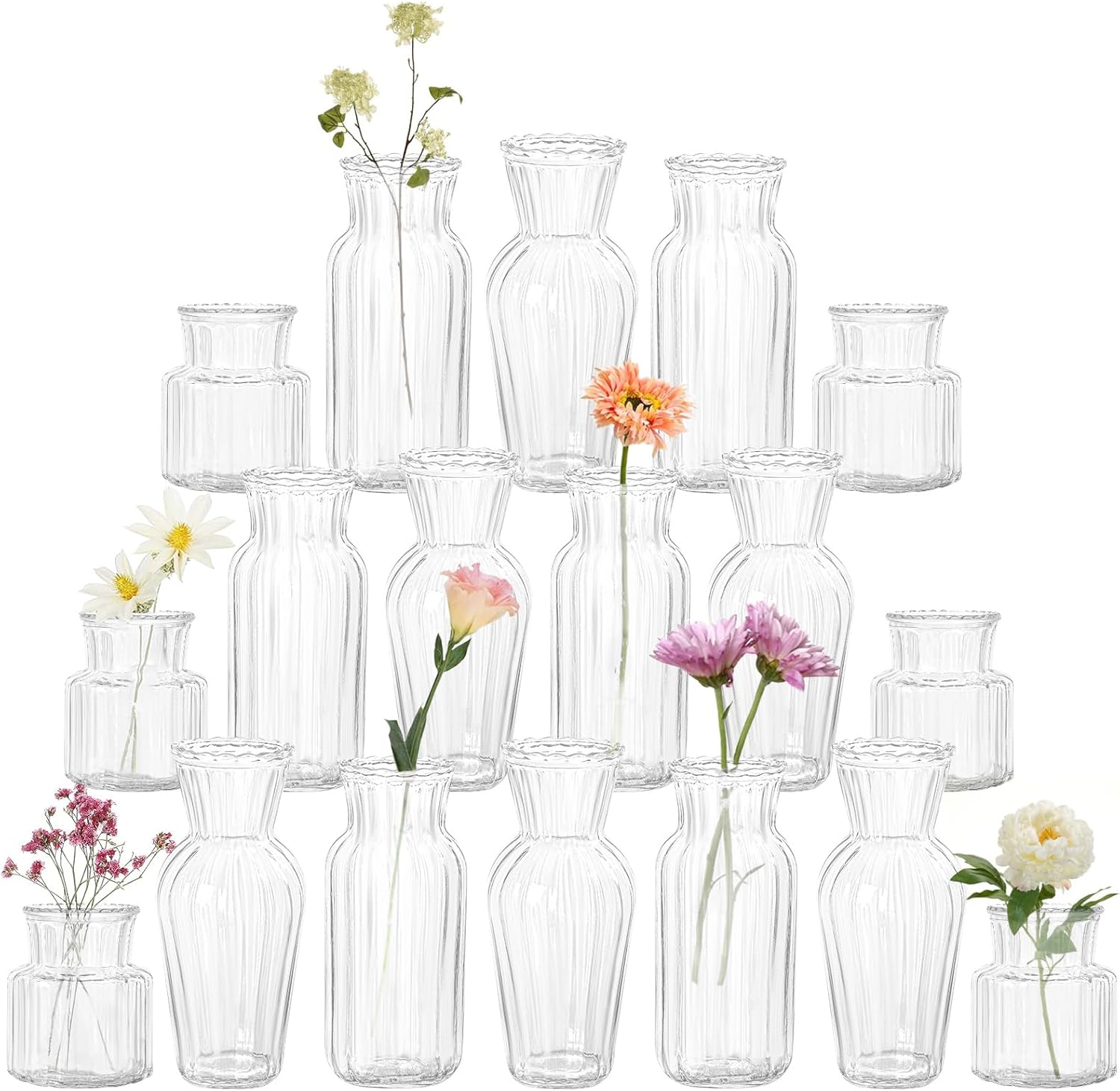 Modern Clear Glass Vase Set - 18Pcs Small Handmade Flower Vases, Decorative Mini Bud Vases for Wedding Reception, Dining Table, and Home Decor - Perfect for Single Stem Flowers