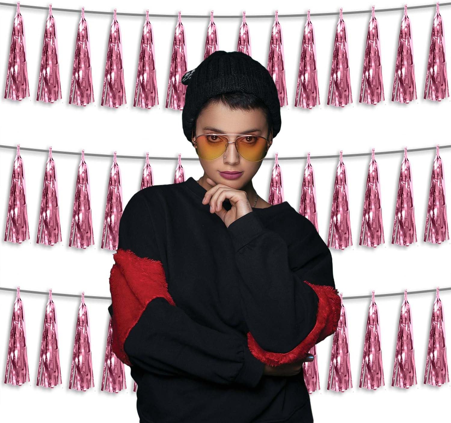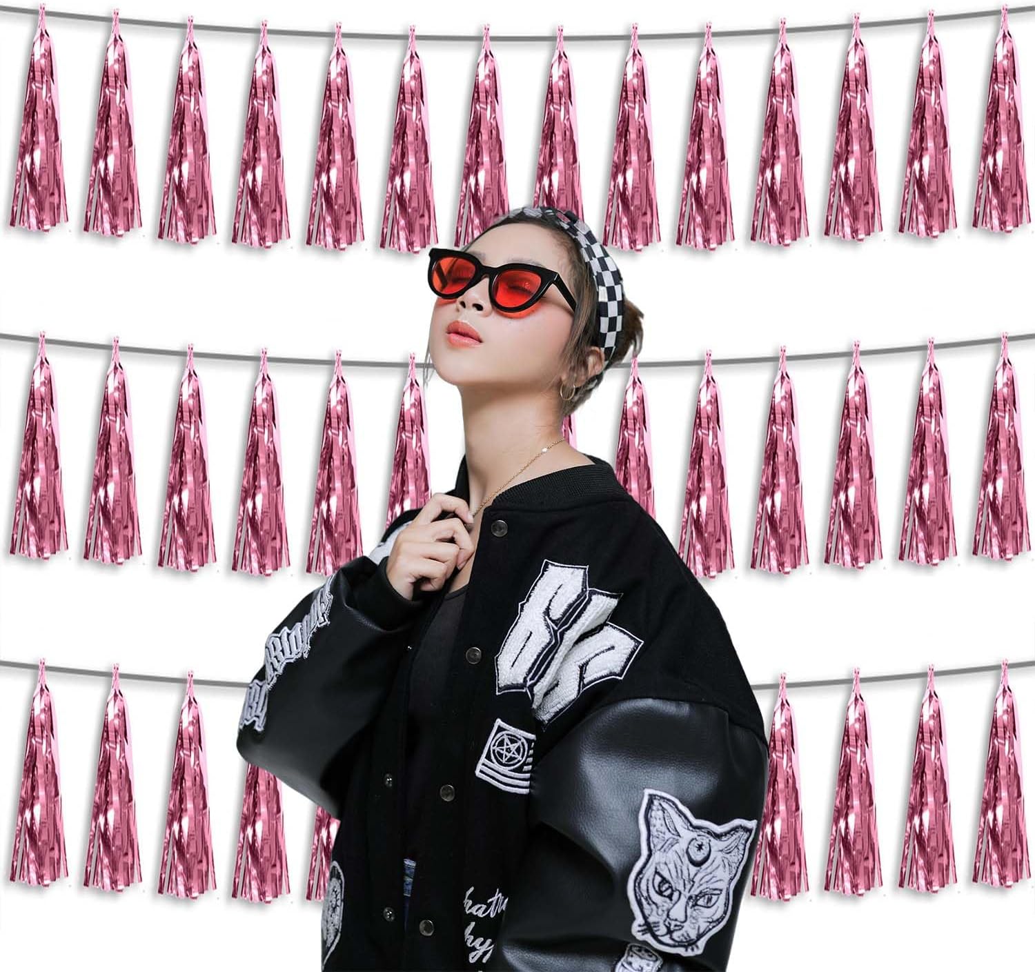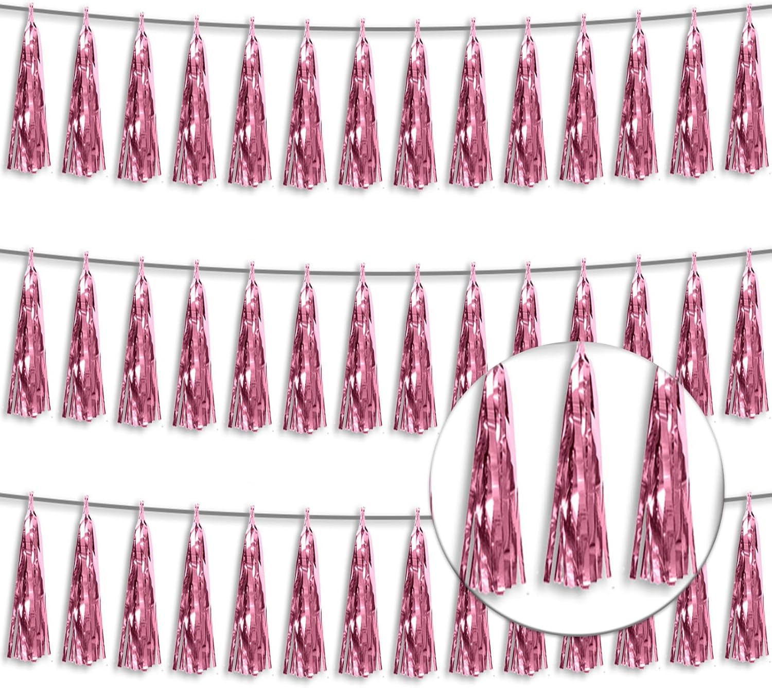 3P Metallic Fringe Tassel Banner Garland Foil Tinsel Streamer Wall Hanging Curtain Backdrop Banner for Parade Floats, Graduation Decorations, Wedding Party Decoration(Pink)