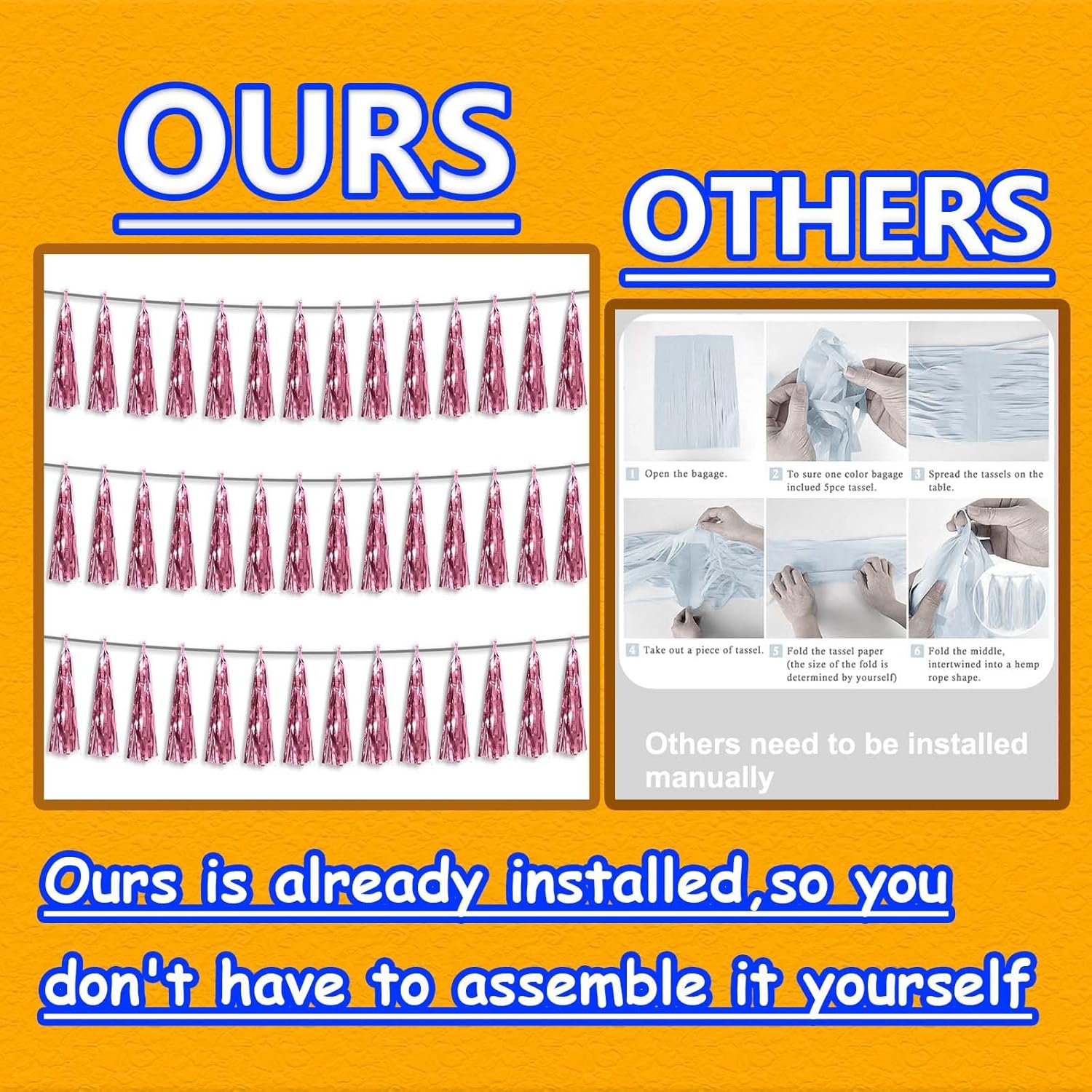 - 【Package Includes】The total length of the pink birthday tassels banner is 30 feet, divided into 3 strips, each 10 feet long. Each banner contains 15 tassels, and each tassel measures 14 inches, for birthday decorations many occasions uitable for Patriotic display, Homecoming Float, Christmas Float, ecorative metal trailers, graduation floats etc