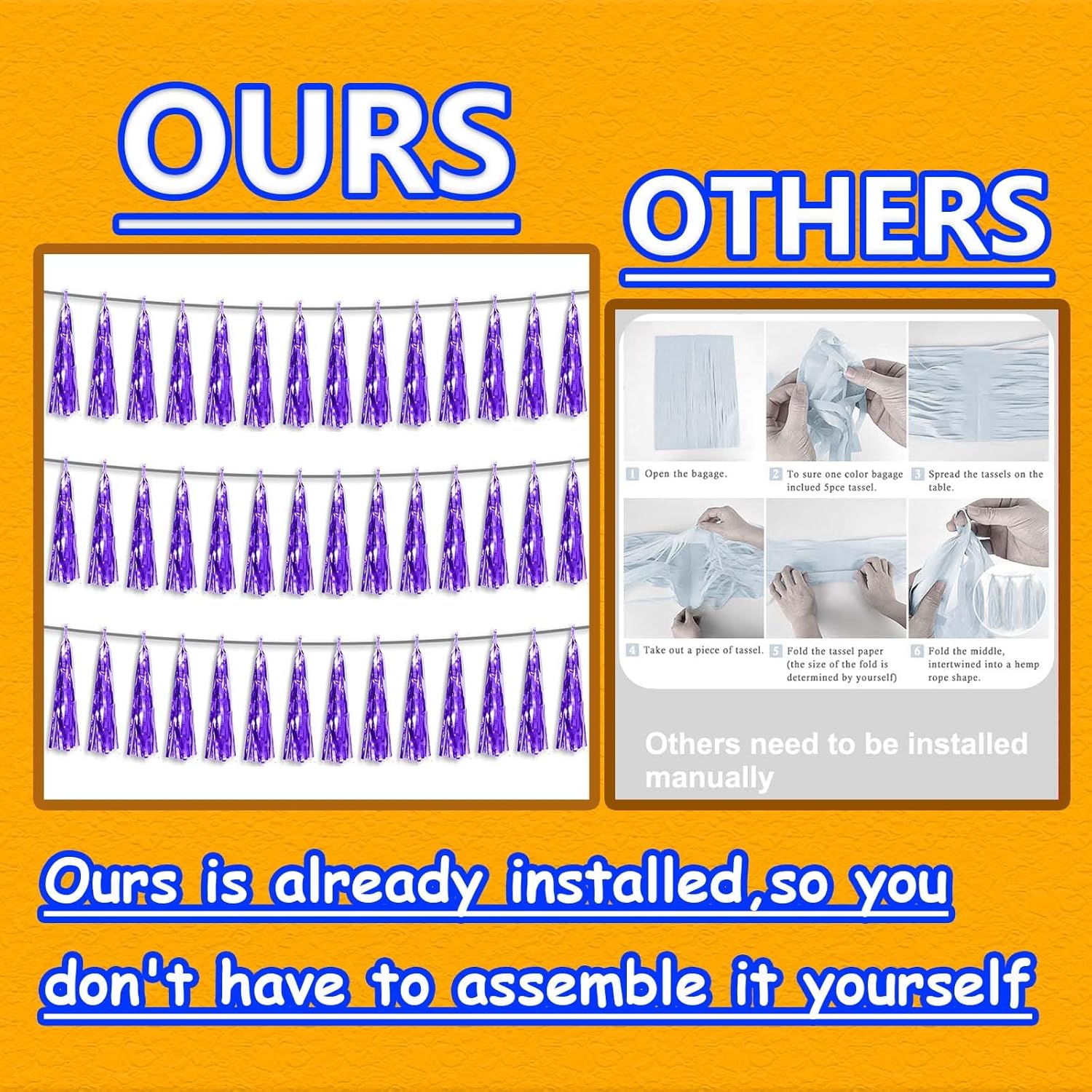 - 【Package Includes】The total length of the purple birthday tassels banner is 30 feet, divided into 3 strips, each 10 feet long. Each banner contains 15 tassels, and each tassel measures 14 inches, for birthday decorations many occasions uitable for Patriotic display, Homecoming Float, Christmas Float, ecorative metal trailers, graduation floats etc