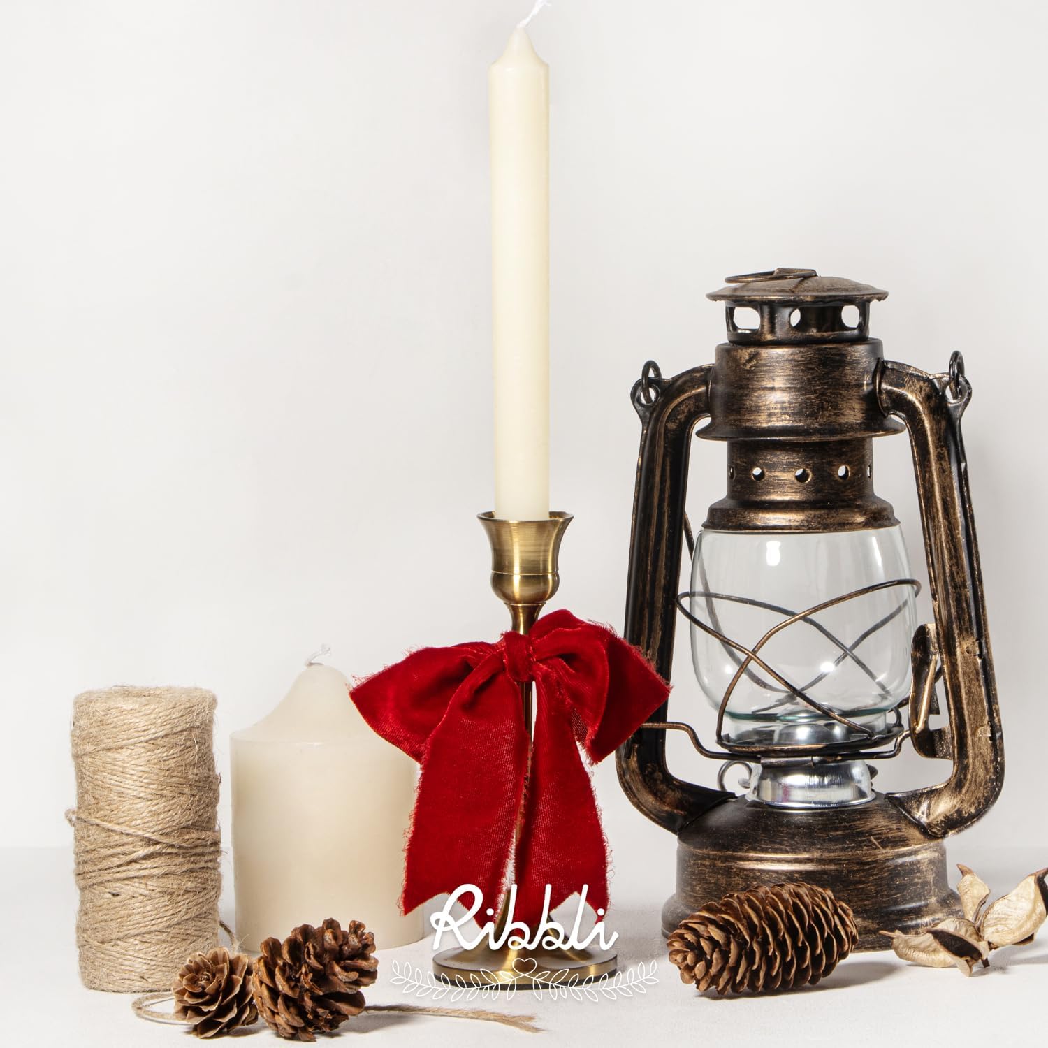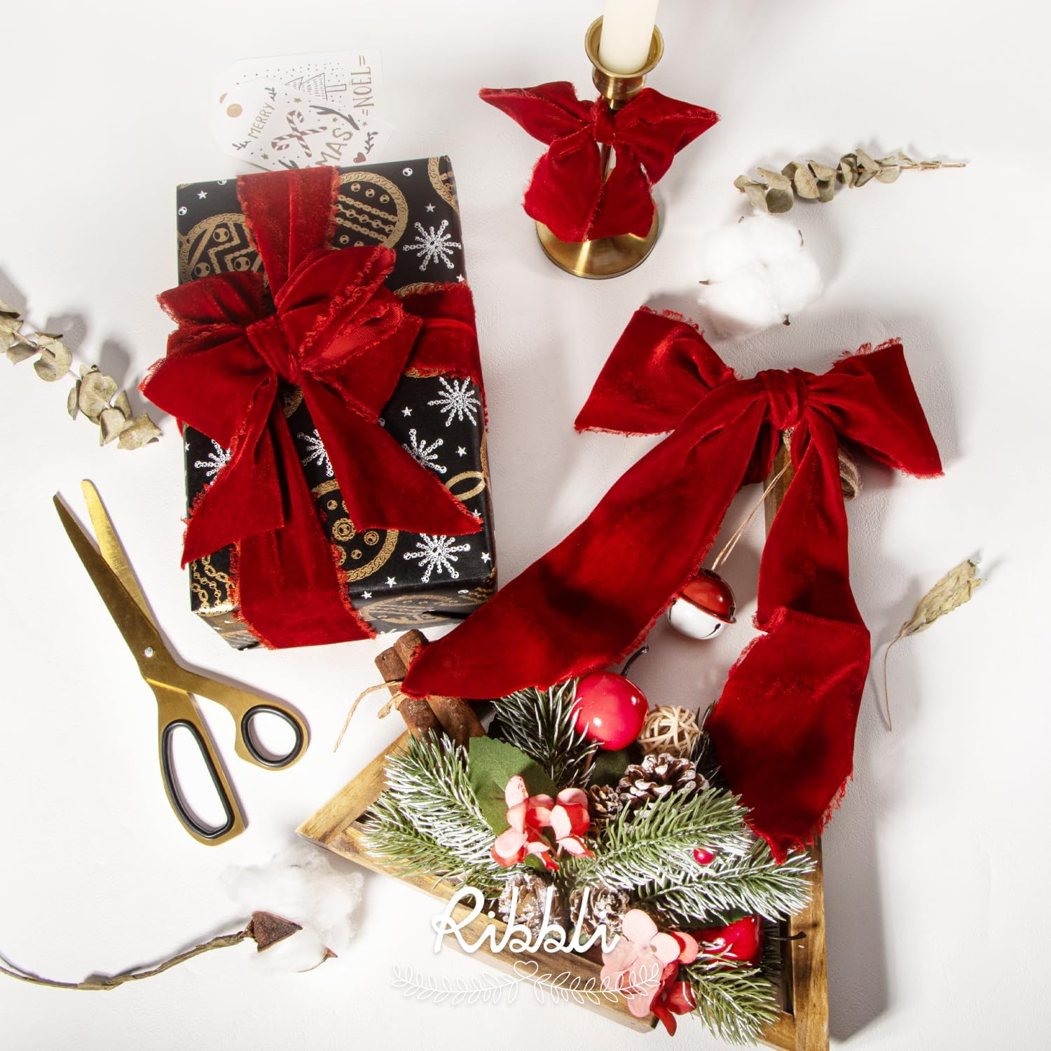 Ribbli Red Velvet Ribbon 1.5 Inch Handmade Frayed Vintage Christmas Ribbon for Gift Wrapping Christmas Tree Ornament Wreath Craft Home Decor -Total 3 Yards with Wooden Spool