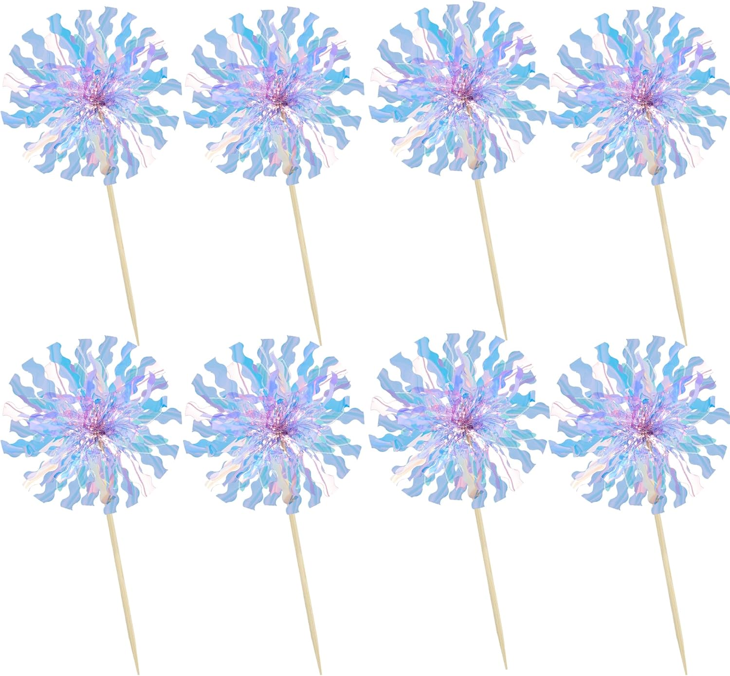 Ephlyn 30Pcs Foil Firework Cupcake Toppers Party Birthday Cake Toppers Supplies Sparkle Tinsel Cocktail Fruit Toothpick for Birthday Wedding Graduation Party Light Blue