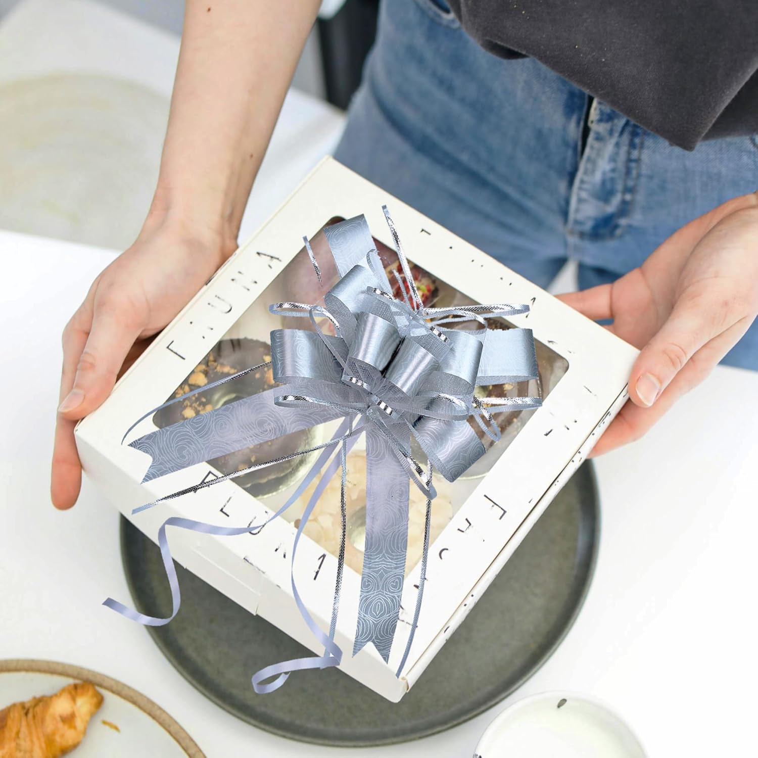 WEWILUCK Big Bow for Present, 15 PCS Pull Gift Bows for Gift Wrapping, Gift Baskets, Christmas, Wedding, and Birthday Party Decor(Silver with Rose Pattern, 6 inches)