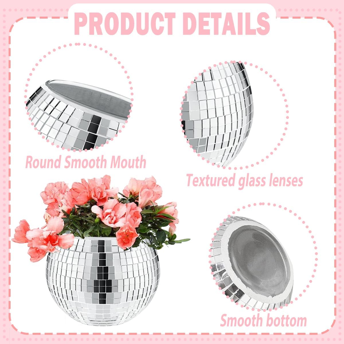 - Sparkling Design: Our disco ball planter combines the elegance of a vase with the design sense of a disco, the disco vase is equipped with reflective mirrors on the surface to capture and refract light, refracting a twinkle-inducing effect in any room, full of design. Bring you a lot of fun; it's really a design and attractive decoration for your bedroom, living room, kitchen, wedding table centerpieces, disco party and all kinds of party balls.