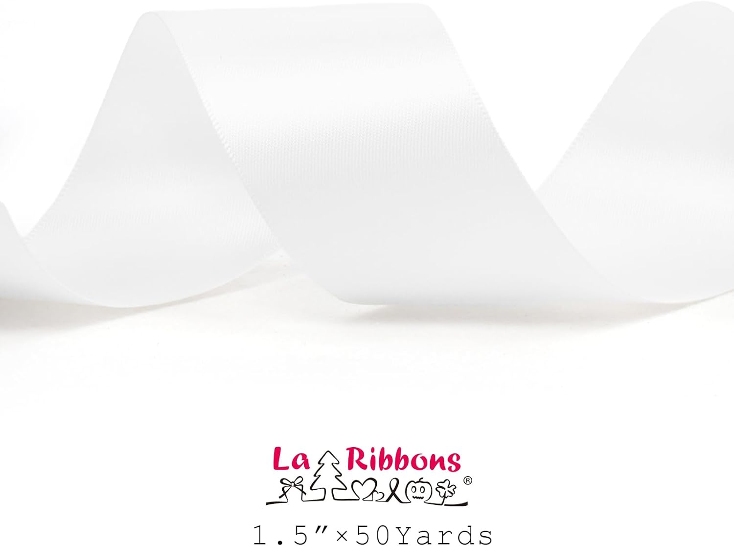 LaRibbons 1 1/2 Inch 50 Yard Double Faced Satin Ribbon,White Satin Craft Fabric Ribbon for Gift Wrapping Floral Bouquets Wedding Party Decoration