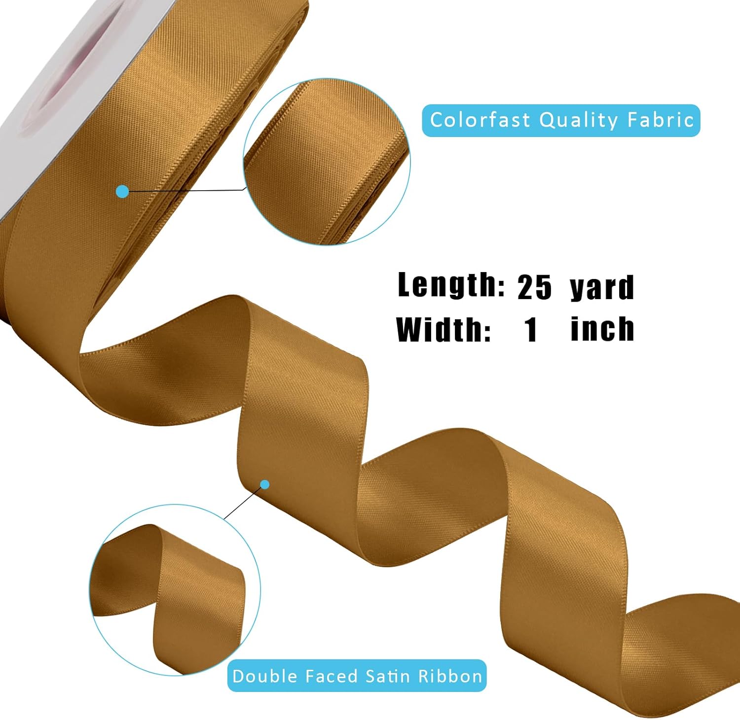 LaRibbons Pale Gold Satin Ribbon 1 Inch 25 Yards Double Faced Gold Silk Ribbon for Flower Bouquet Crafts Gift Wrapping Wedding Party Decoration