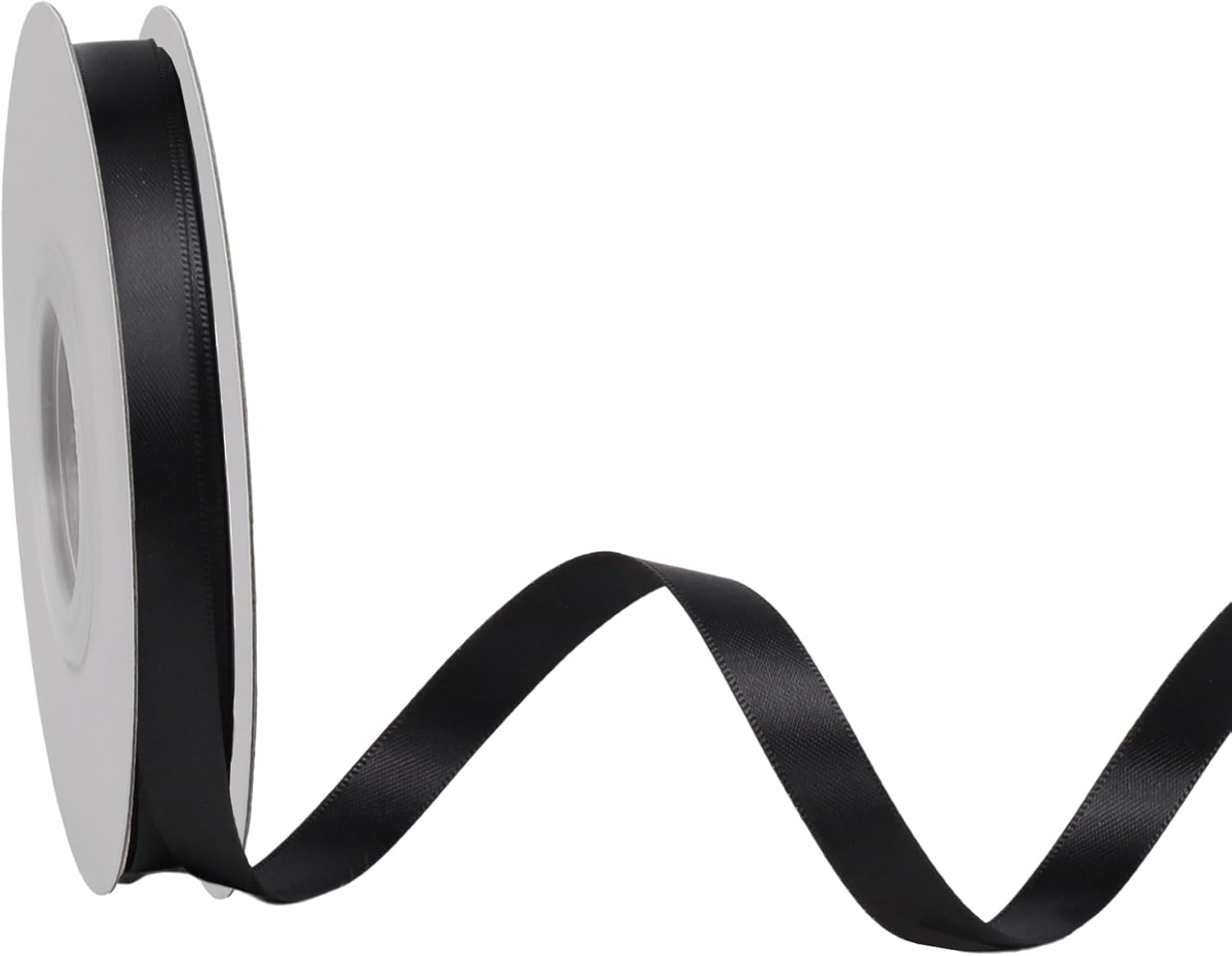 LaRibbons 3/8 Inch 25 Yard Double Faced Satin Ribbon,Black Small Satin Craft Fabric Ribbon for Gift Wrapping Floral Bouquets Wedding Party Decoration