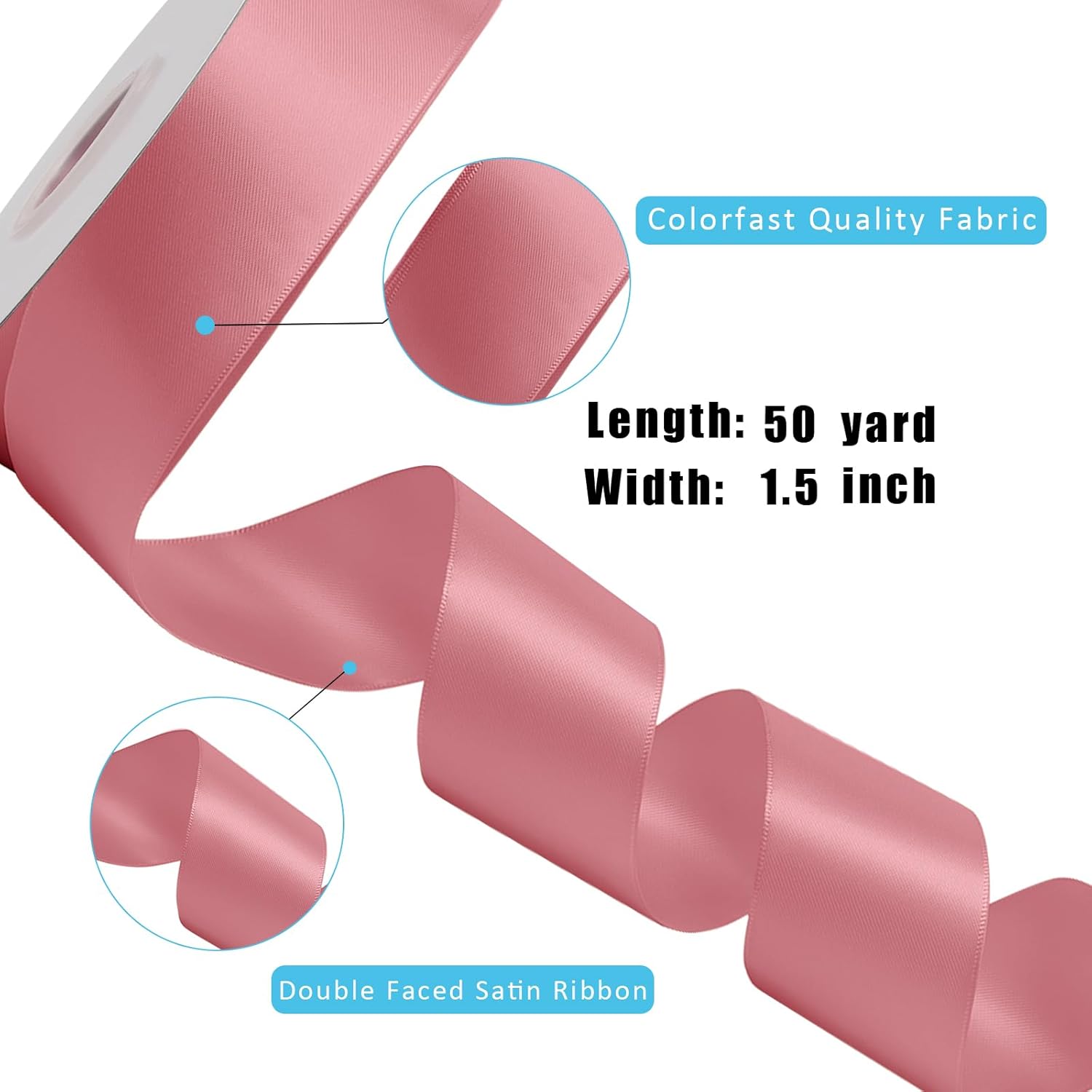 LaRibbons 1 1/2 Inch 50 Yard Double Faced Satin Ribbon,Dust Pink Satin Craft Fabric Ribbon for Gift Wrapping Floral Bouquets Wedding Party Decoration
