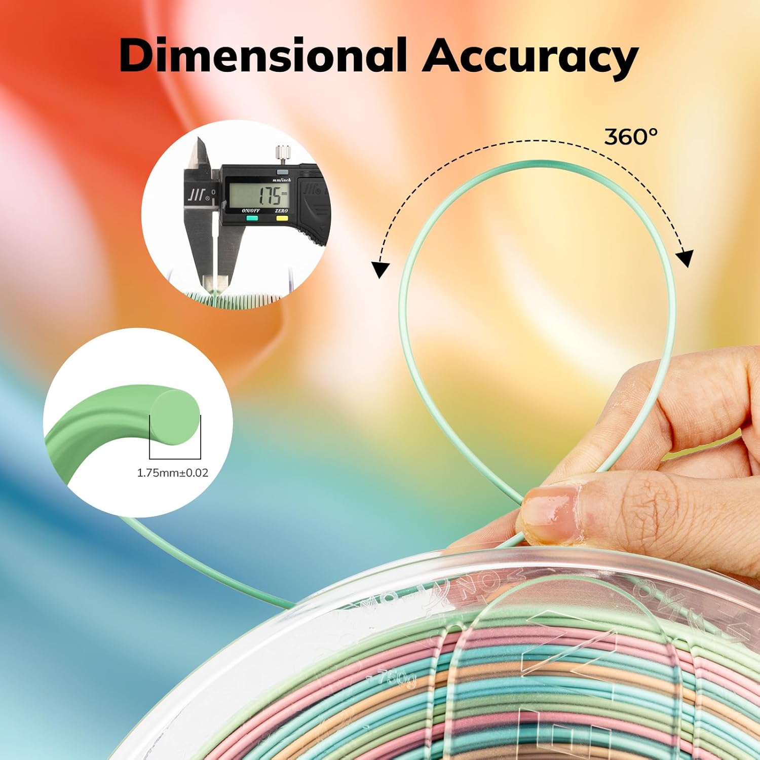 - Precision Printing: Achieve flawless prints with shiny silk rainbow PLA filament, engineered for ease of use and exceptional precision. With a product diameter of 1.75 mm and precision tolerance of +/- 0.02 mm, smooth and consistent results