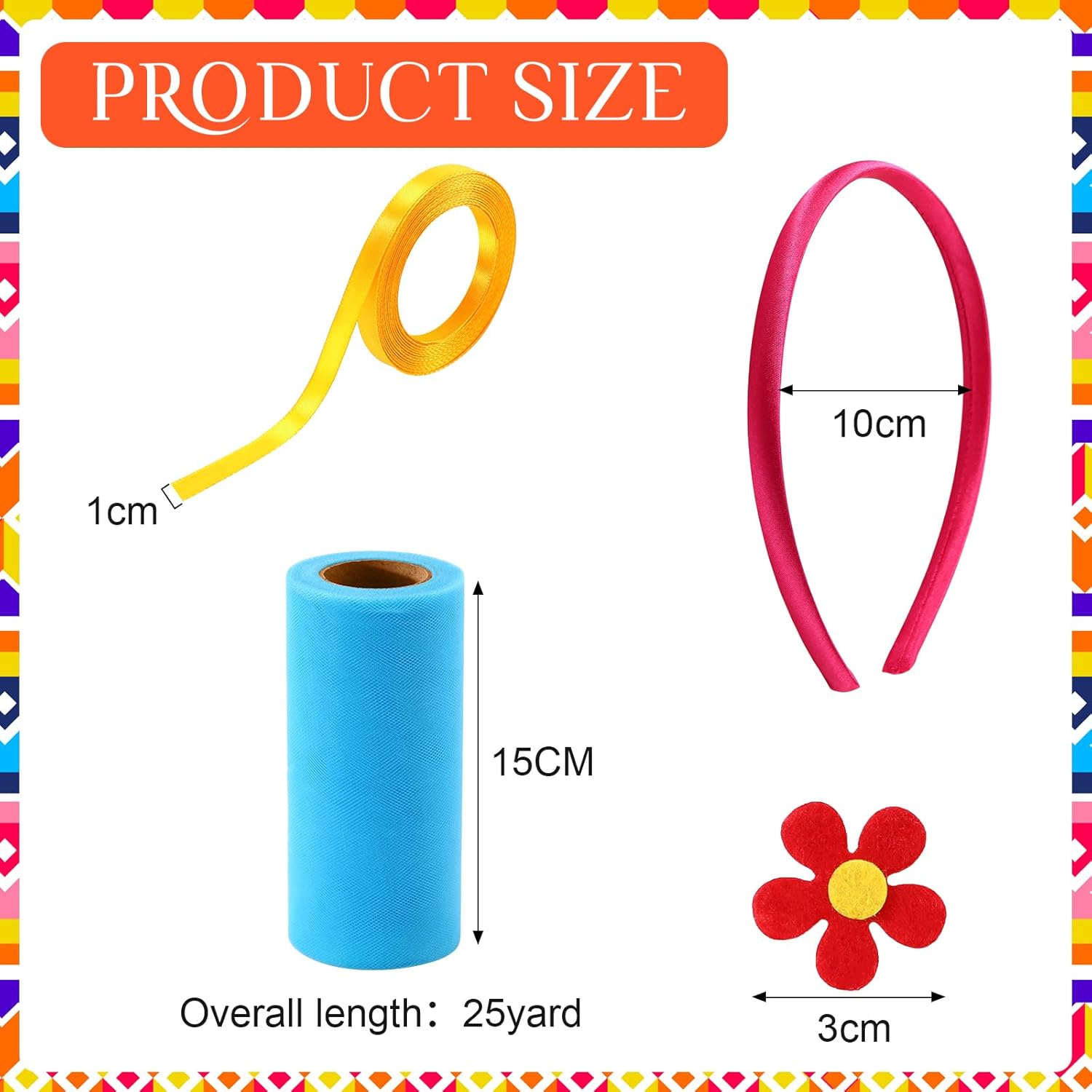 - Product Size: the craft DIY headband is 0.4 inch/ 1 cm wide, yarn roll is about 5.9 inches x 72.2 ft/ 15 cm x 22 m, felt flower is about 1.2 inches/ 3 cm and colorful ribbon is about 0.4 inch x 72.2 ft// 1 cm x 22 m
