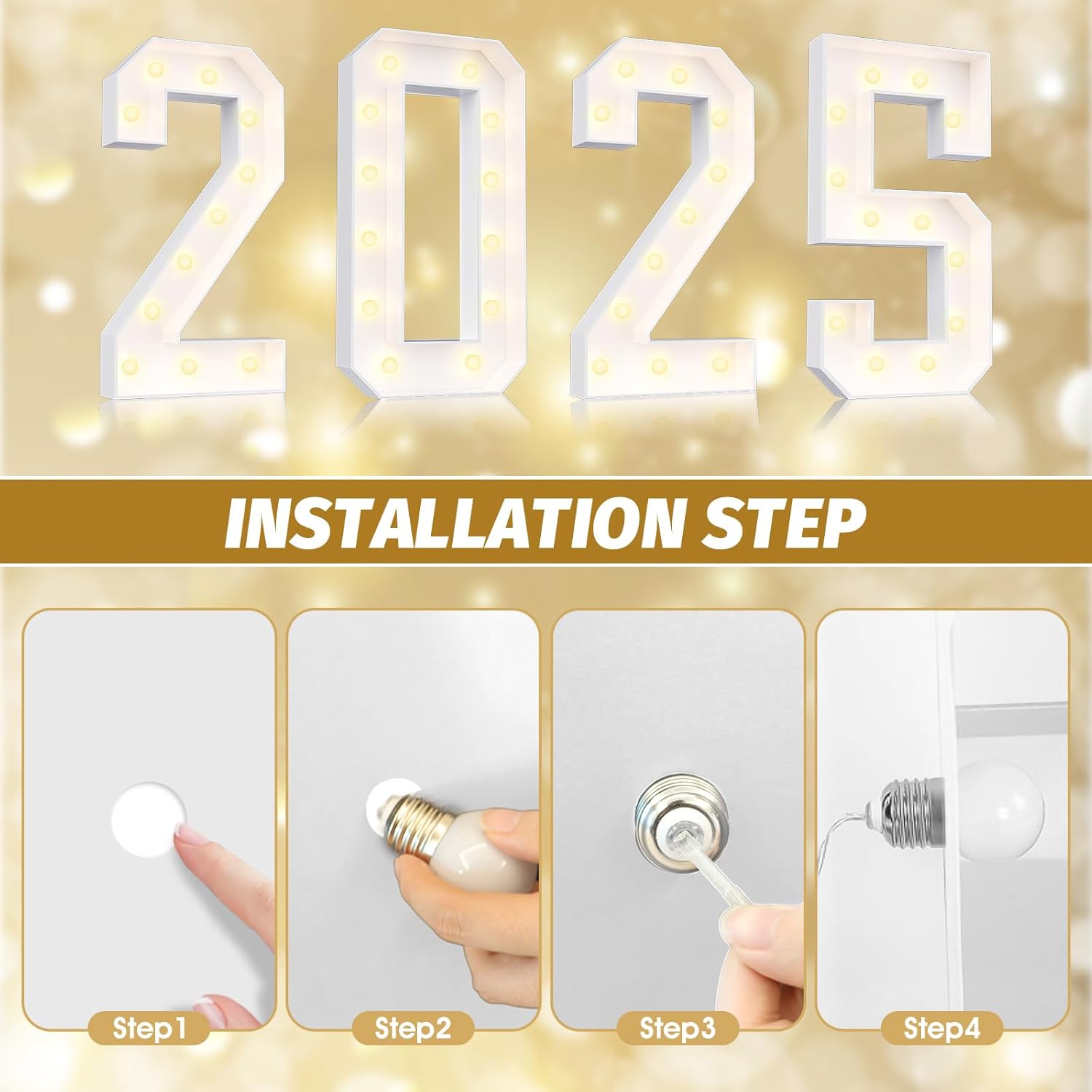 - 【Light Up Your Party】Marquee numbers 4 feet tall / 48 inches / 120 cm. 27 letters,10 numbers can freely customize your party theme: 2025,BABY,MARRY ME,LOVE,BIRTHDAY,CHRISTMAS,NEW YEAR etc