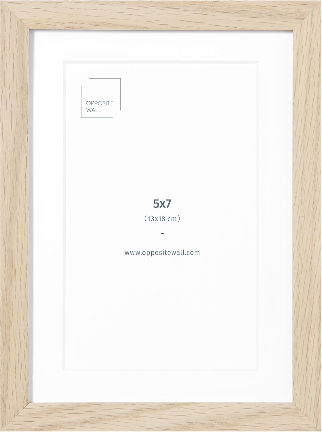 Opposite Wall - 5x7 in - Natural Solid Oak Wood Picture Frames with Mat - Wall Hanging & Tabletop Photo Frame - Pictures Display 4x6 with Mat, 5x7 without - Office, Gallery & Home Decor