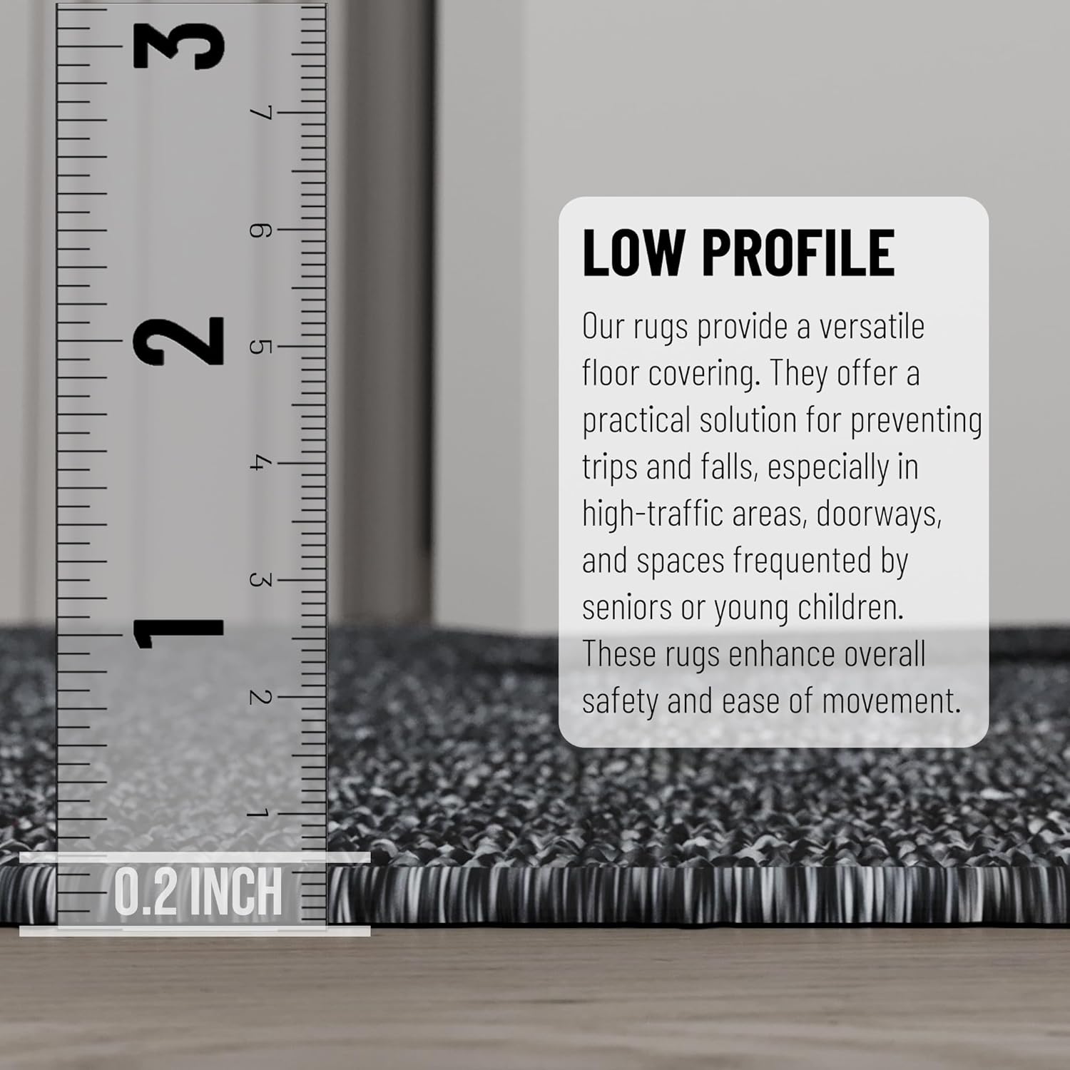 - [ULTRA THIN]: An ultra thin pile thickness of 0.2 inches offers ideal functionality that is perfect for busy areas, underneath furniture, and in entryways as it will not obstruct doorways.