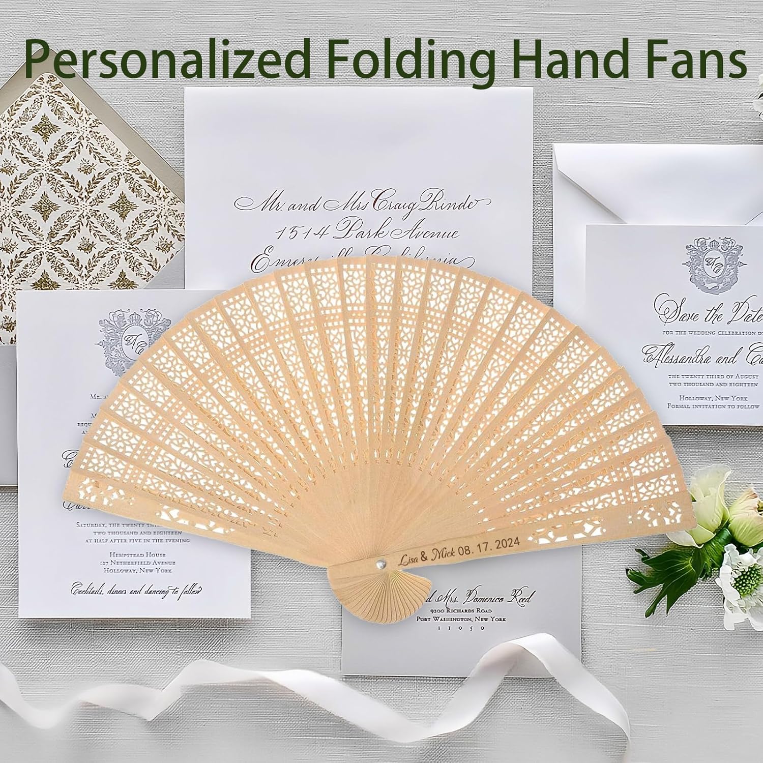 - Customizable Keepsakes: Personalize your wedding fans to match your theme or color scheme. Print names, initials, or special messages on each fan, creating a memorable keepsake for your guests to take home and cherish. These customized fans add a unique touch to your celebration.