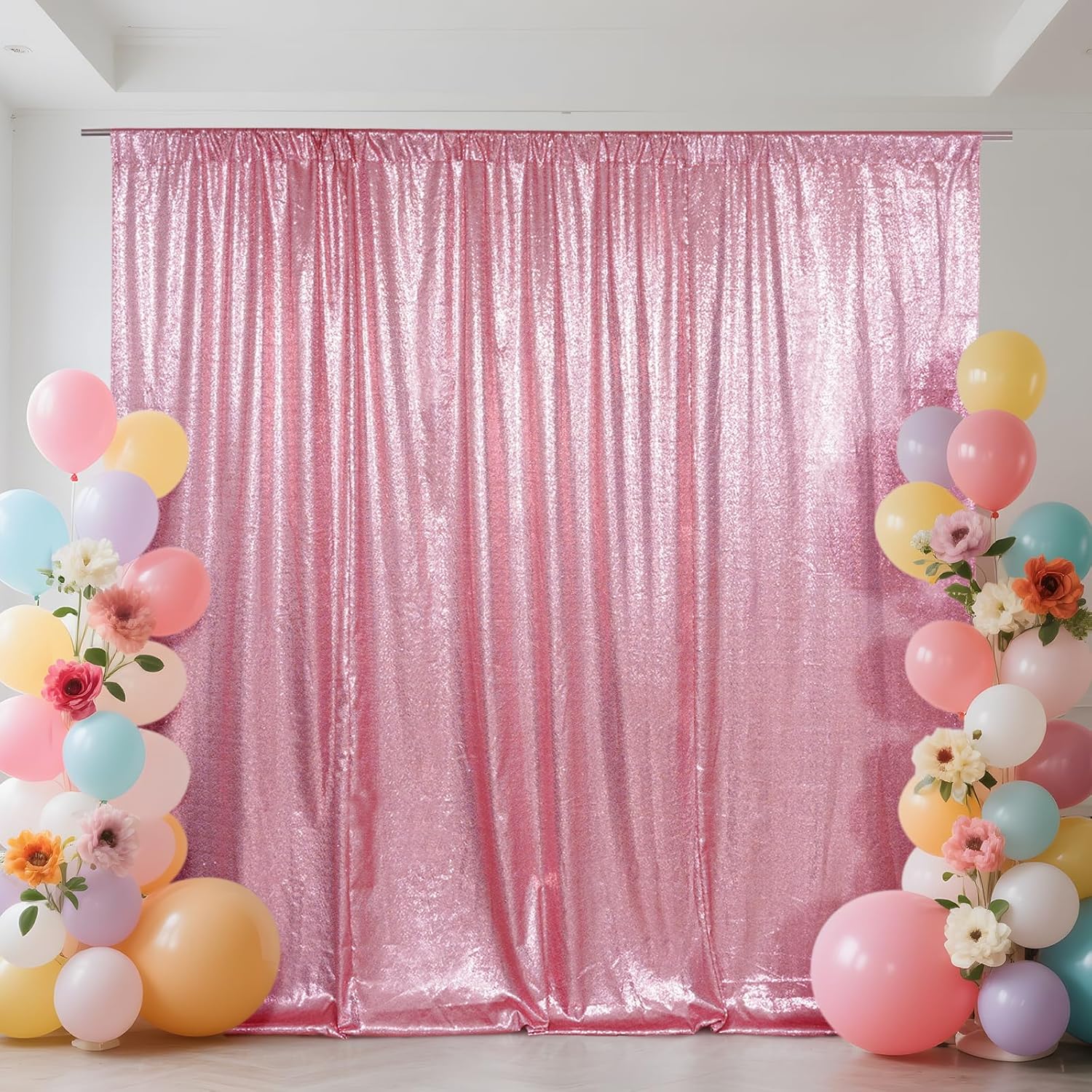 SquarePie Sequin Backdrop Curtain Not See Through Thick Glitter Background for Party 8FT x 10FT Fuchsia Pink
