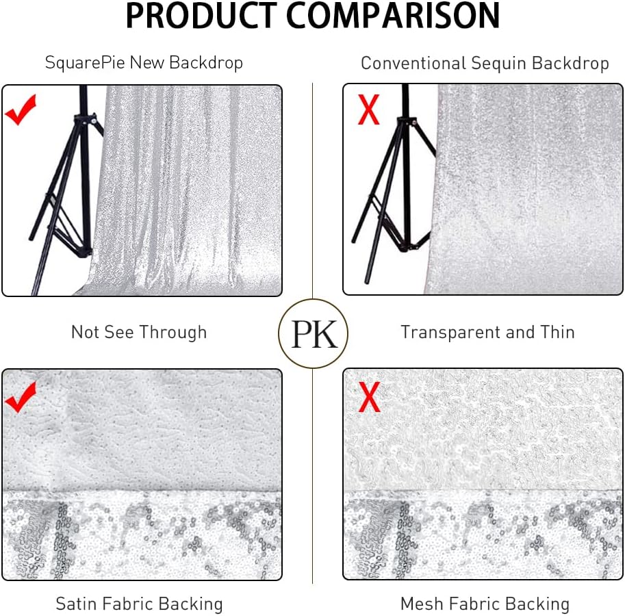 SquarePie Sequin Backdrop Curtain Not See Through Thick Glitter Background for Party 8FT x 10FT Silver