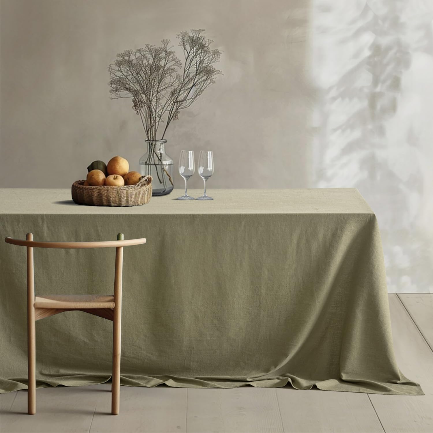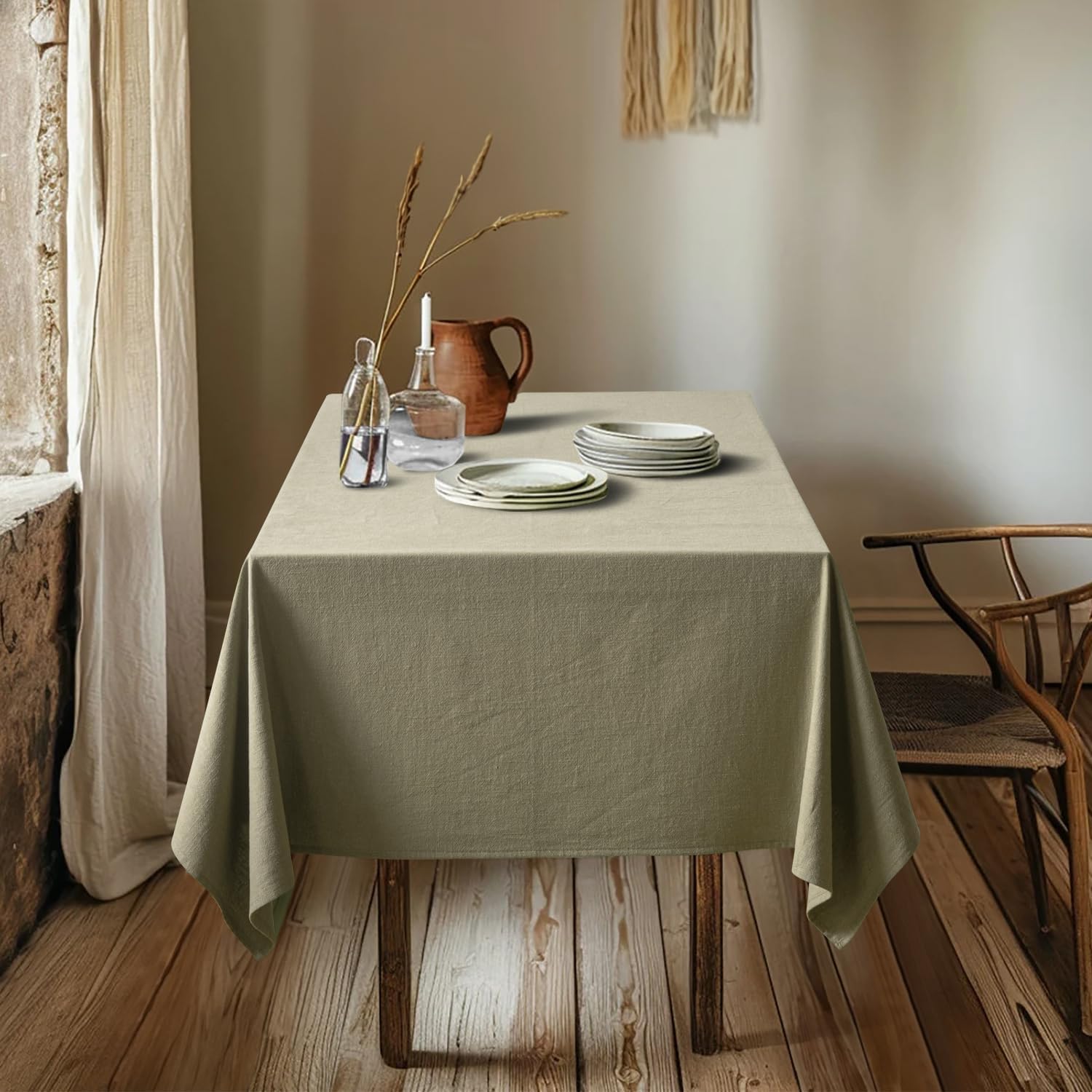 - Natural Linen Fabric:Our tablecloth is crafted of 70% natural ramie linen and 30% cotton. Natural linen fabric makes it soft, comfortable, breathable, and durable for all-season use. It is made of medium weight durable cotton linen that is better protecting your dining table, it also has a good draped effect.