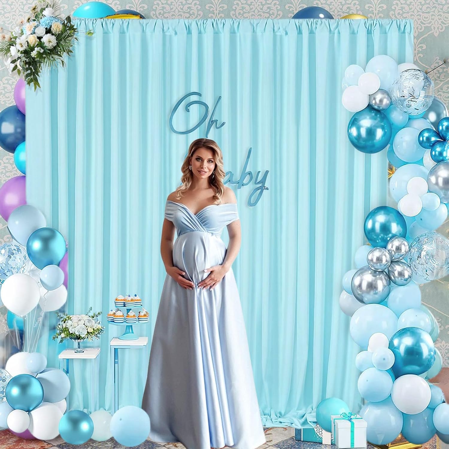 2 Panels Lake Blue Backdrop Curtain, 10 x 7 Feet Background Curtains for Parties, Weddings, Baby Showers, Bachelorette Halloween, Christmas Birthday Party Photoshoot Backdrop Curtains Decorations