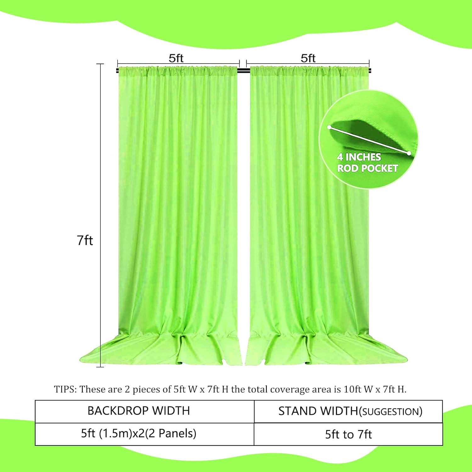 2 Panels Fruit Green Backdrop Curtain, 10 x 7 Feet Background Curtains for Parties, Weddings, Baby Showers, Bachelorette Halloween, Christmas Birthday Party Photoshoot Backdrop Curtains Decorations