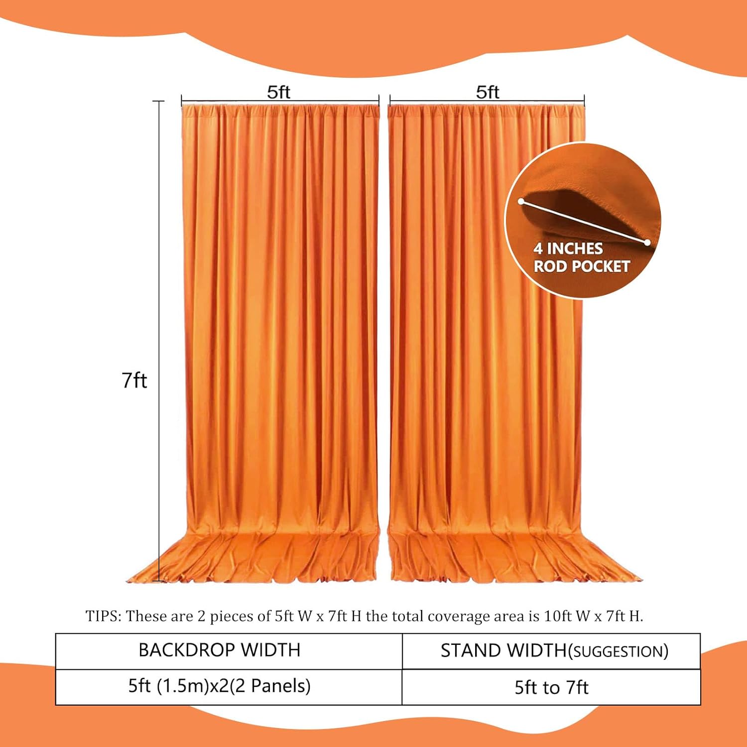 2 Panels Orange Backdrop Curtain, 10 x 7 Feet Background Curtains for Parties, Weddings, Baby Showers, Bachelorette Halloween, Christmas Birthday Party Photoshoot Backdrop Curtains Decorations