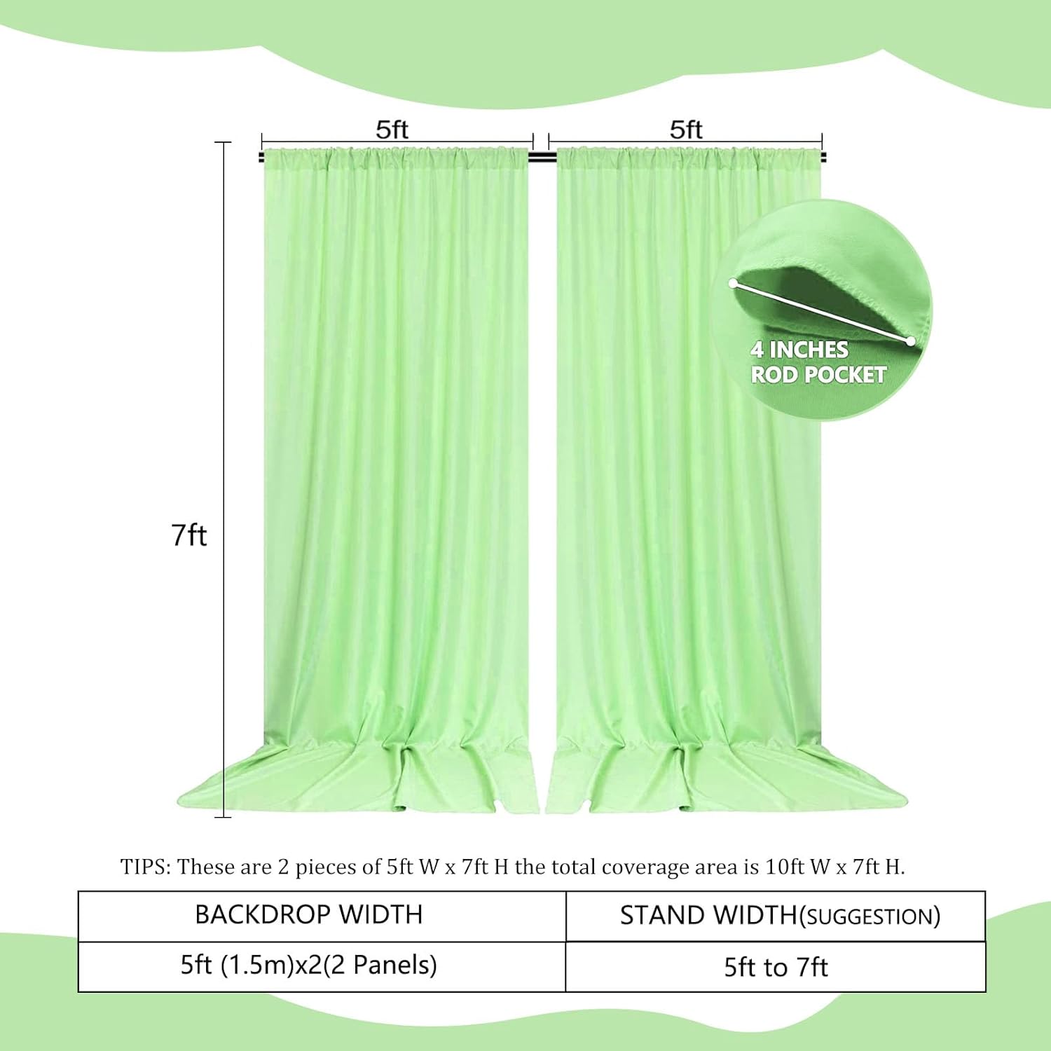 2 Panels Light Green Backdrop Curtain, 10 x 7 Feet Background Curtains for Parties, Weddings, Baby Showers, Bachelorette Halloween, Christmas Birthday Party Photoshoot Backdrop Curtains Decorations