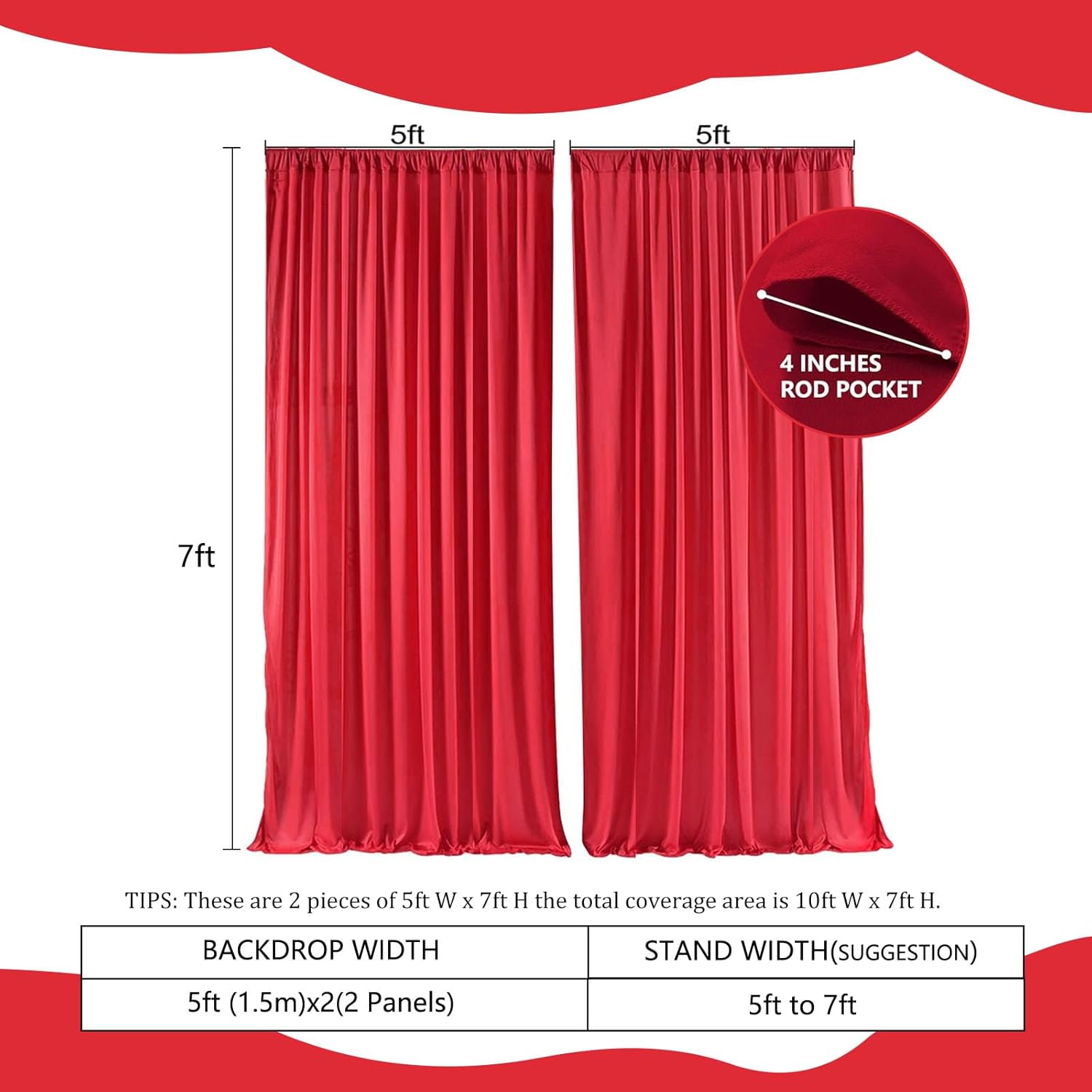 2 Panels Red Backdrop Curtain, 10 x 7 Feet Background Curtains for Parties, Weddings, Baby Showers, Bachelorette Halloween, Christmas Birthday Party Photoshoot Backdrop Curtains Decorations